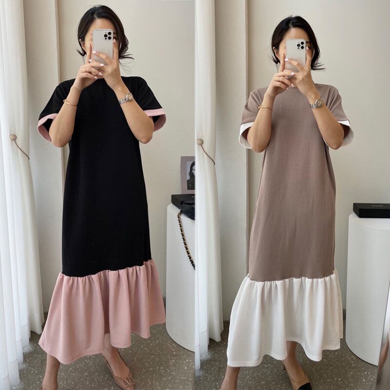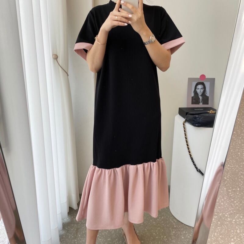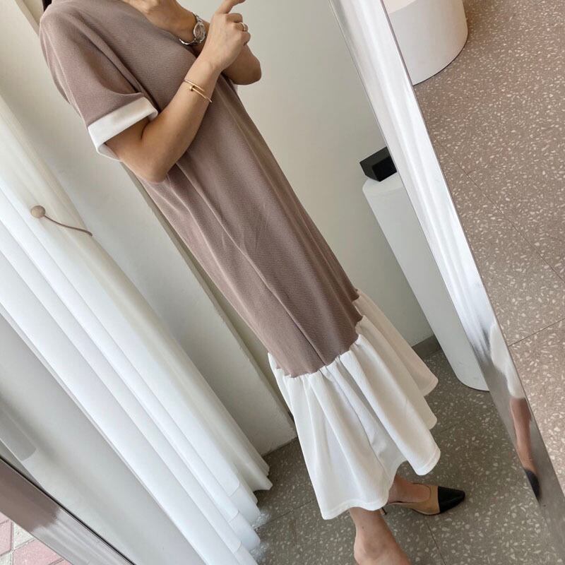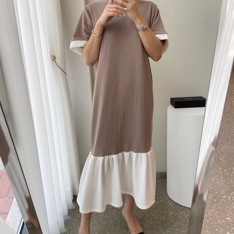 2カラー ツートンカラー 半袖 ワンピース *on273