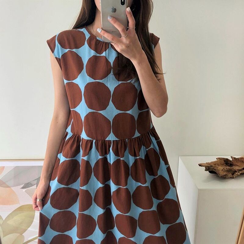 2カラー 水玉 ラウンドネック ノースリーブ ワンピース *on277