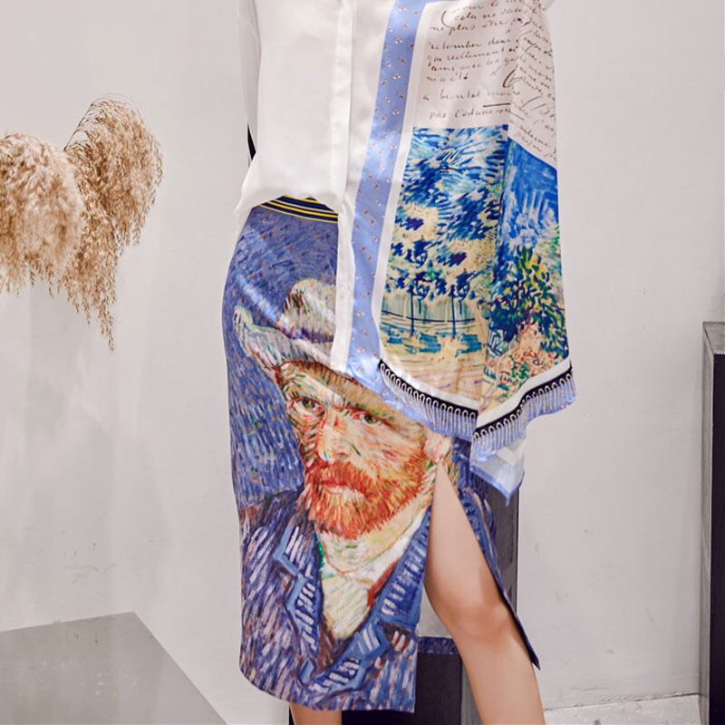 油絵 ペイント プリント スカート セットアップ可 *se043