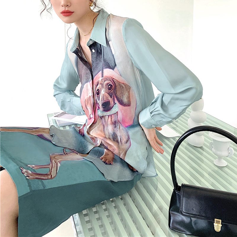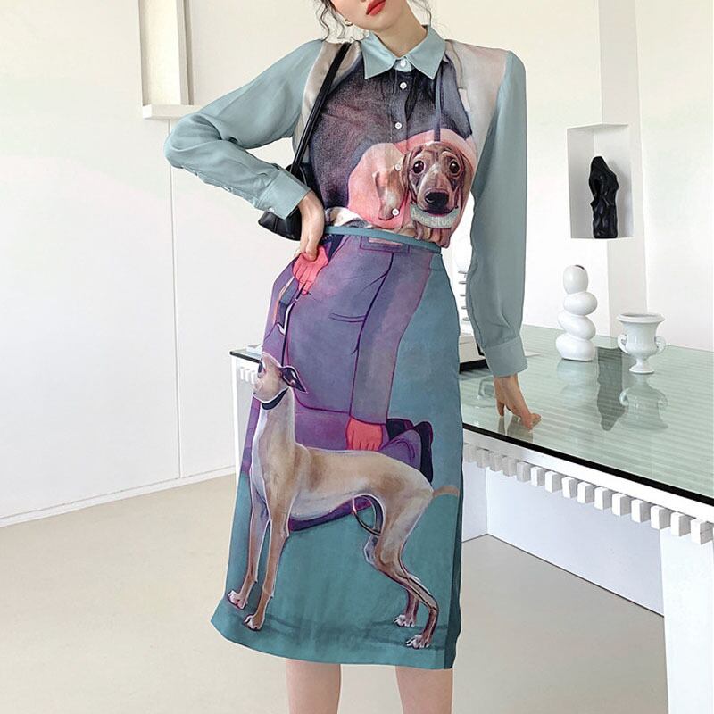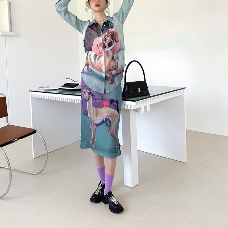 アニマル柄 ペイント プリント スカート シャツ セットアップ可 *se045