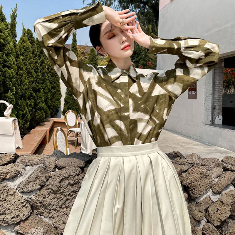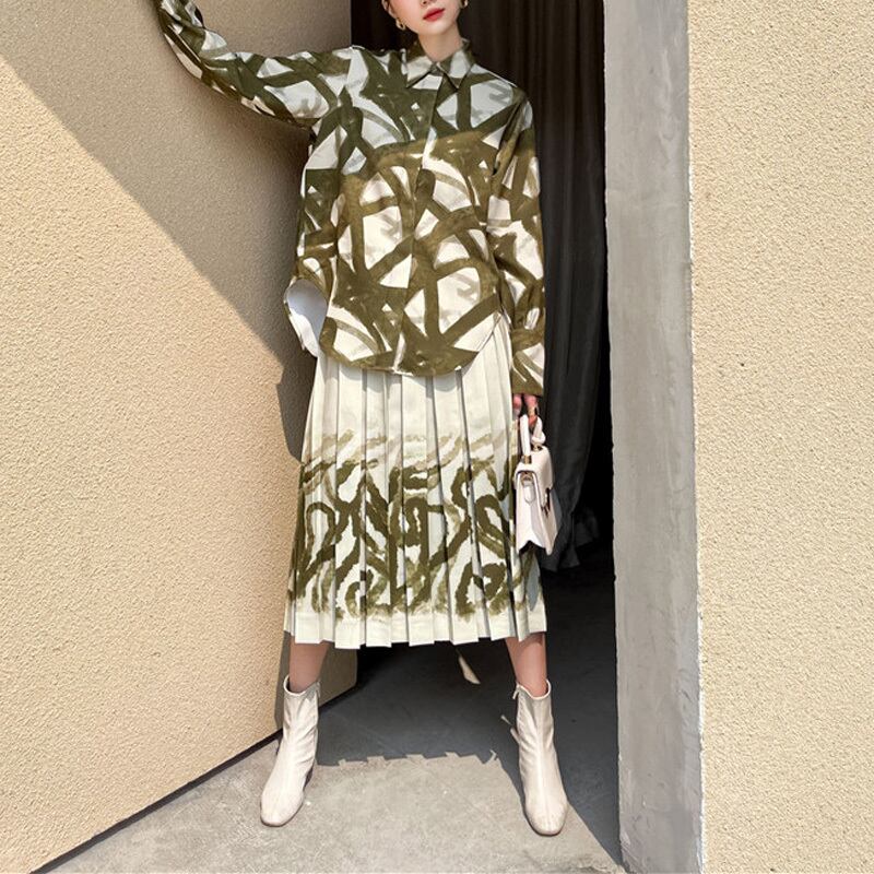 シック プリント 長袖 シャツ ブラウス セットアップ可 *se052