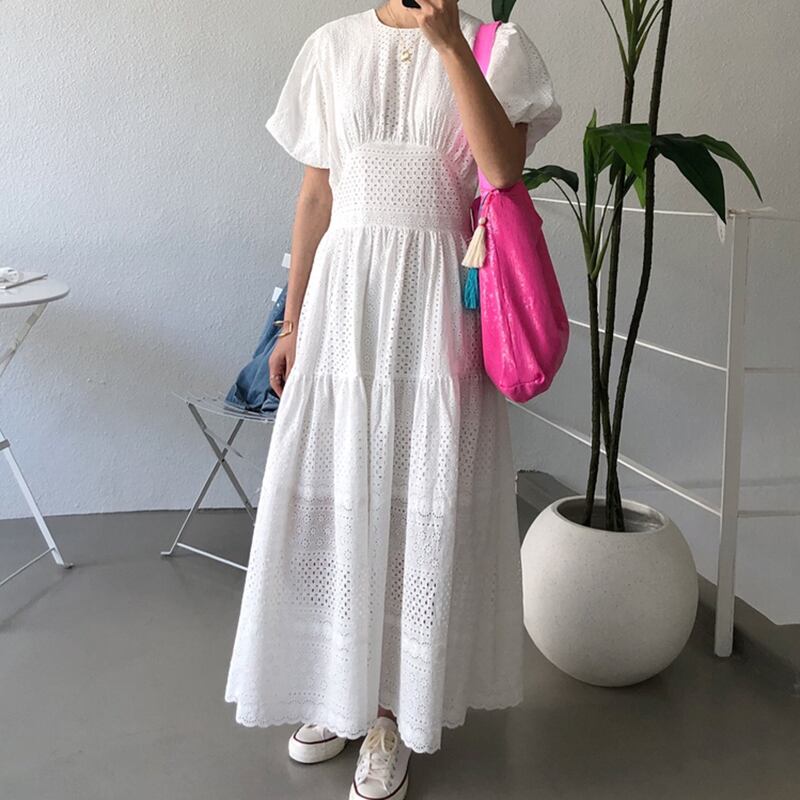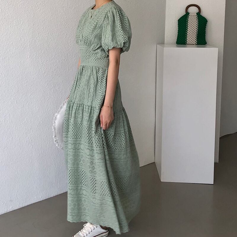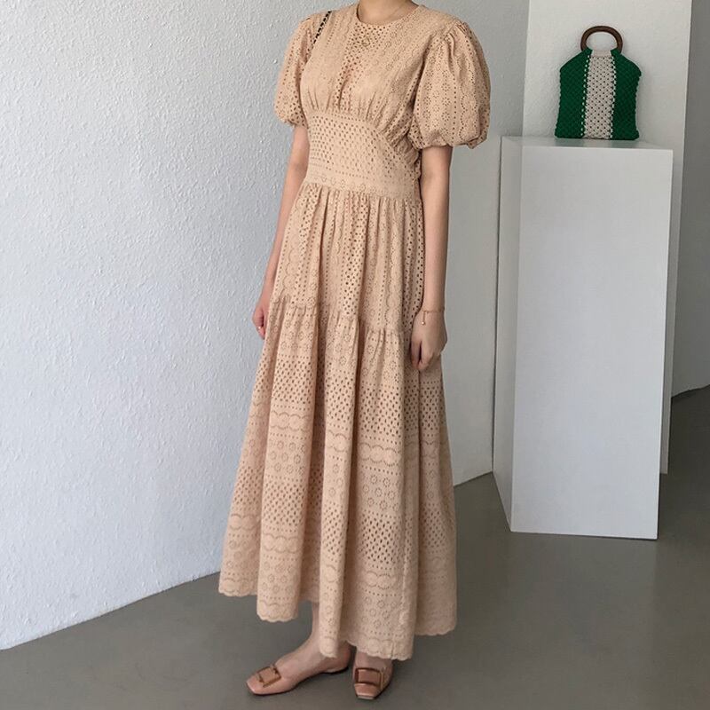 パンチングレースで透け感やシルエットがお洒落なワンピースです。
