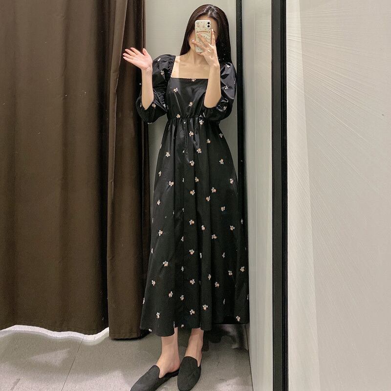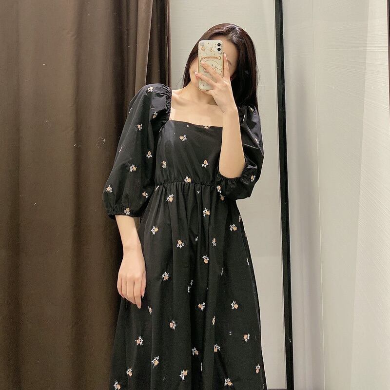 シック フローラル 刺繍 スクエアネック ワンピース *on308