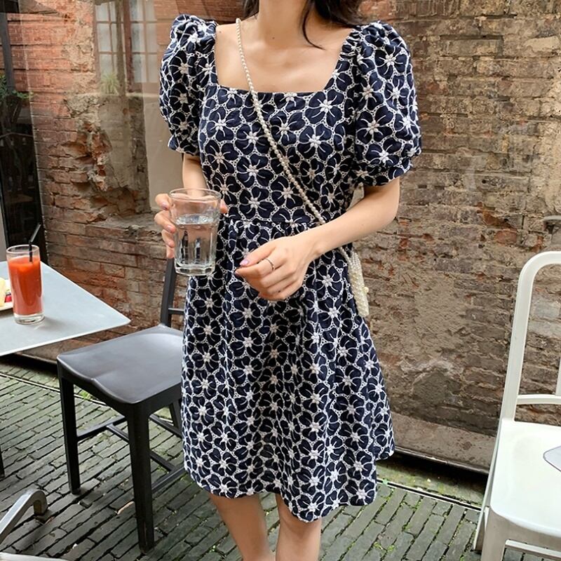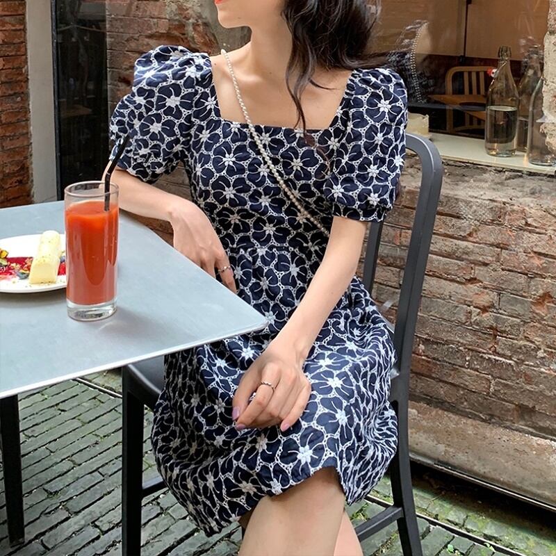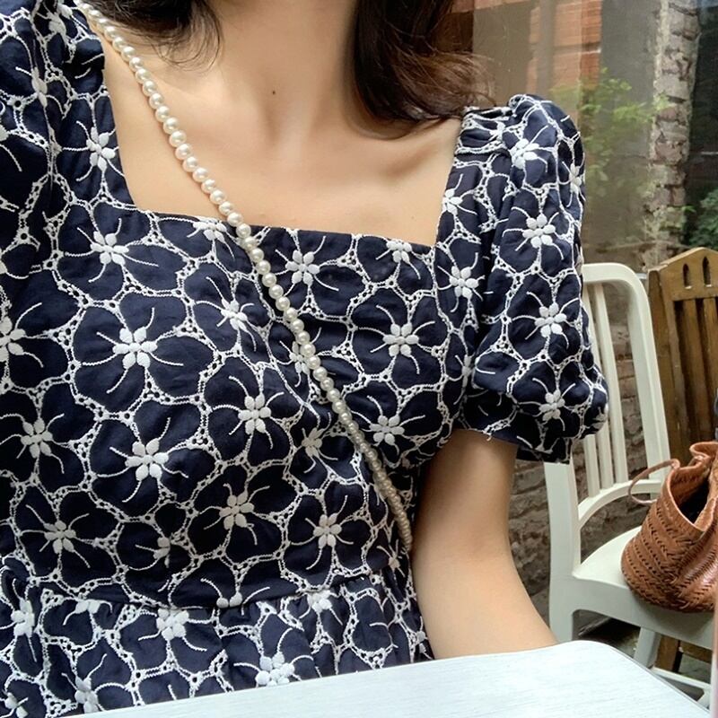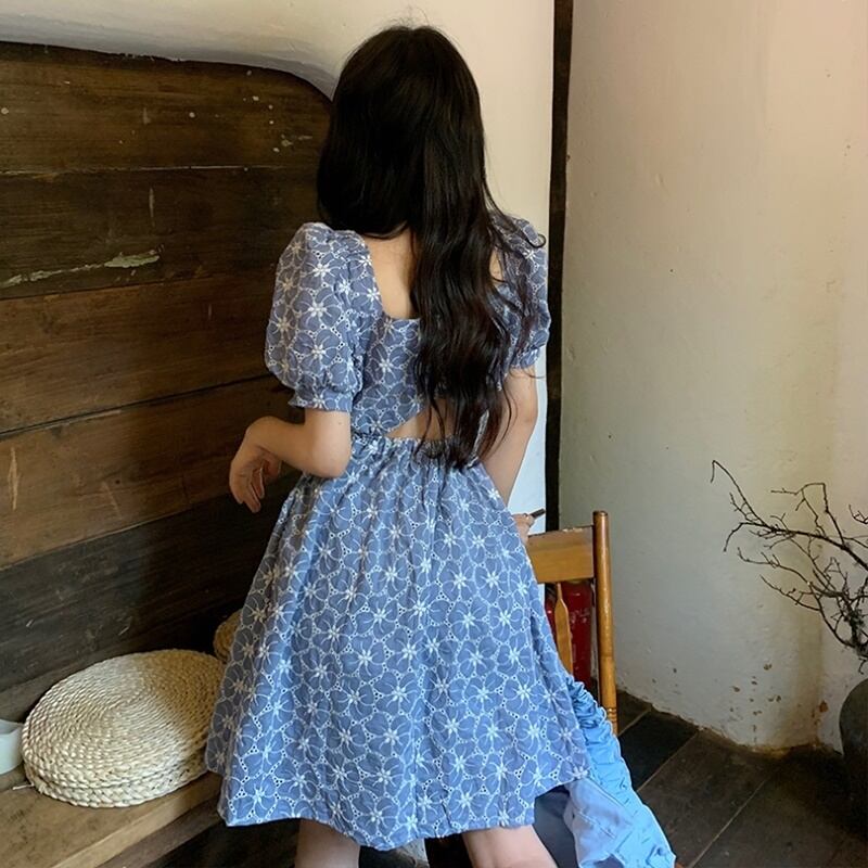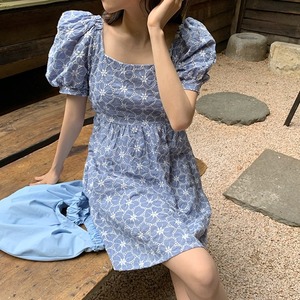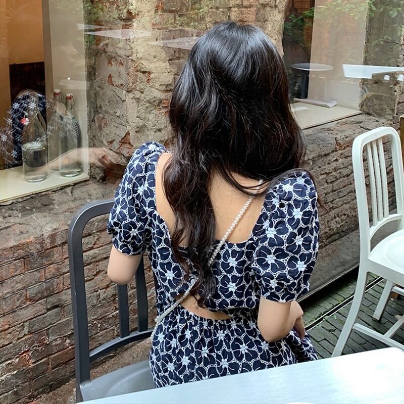 2カラー バックオープン フローラル 半袖 ワンピース *on309
