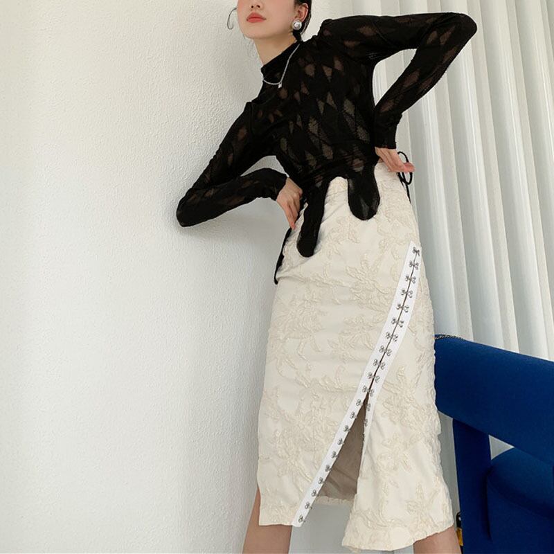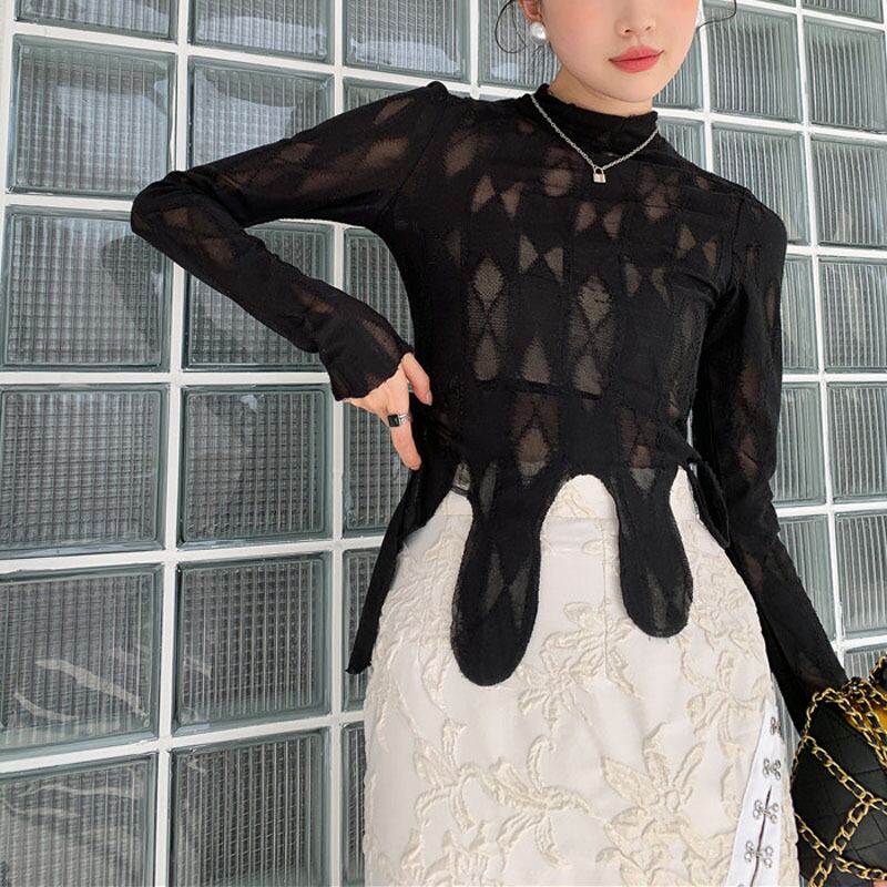 アシンメトリー シアー 長袖 シャツ ブラウス セットアップ可 *se056
