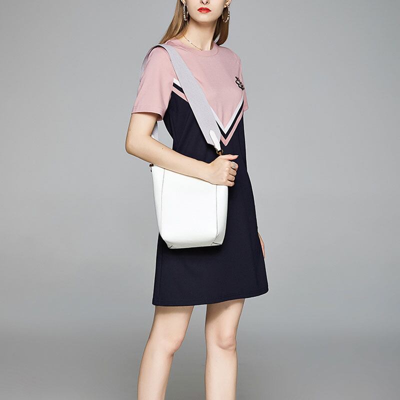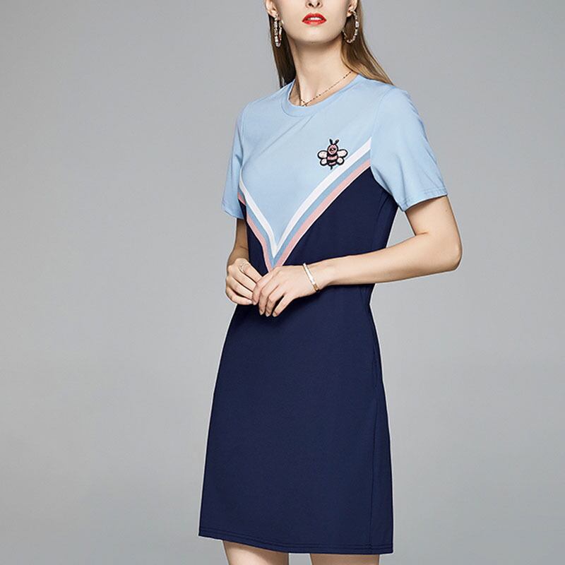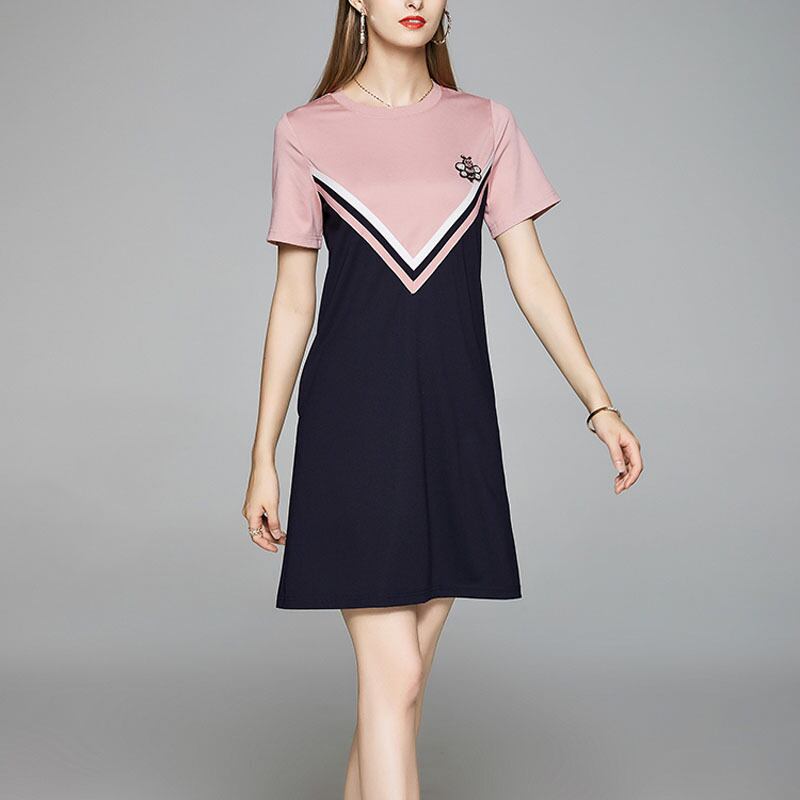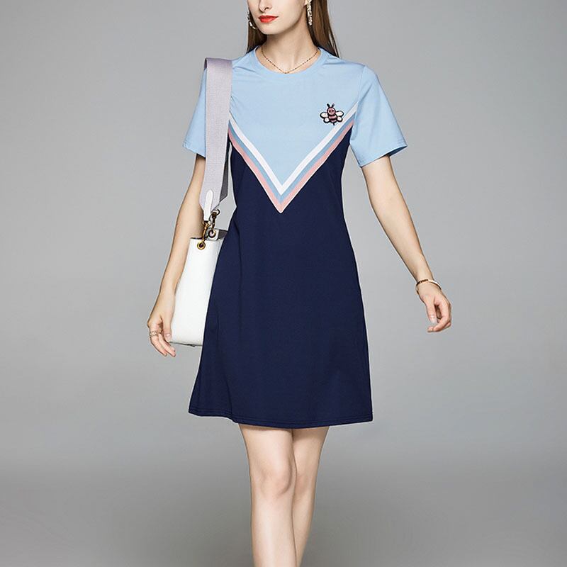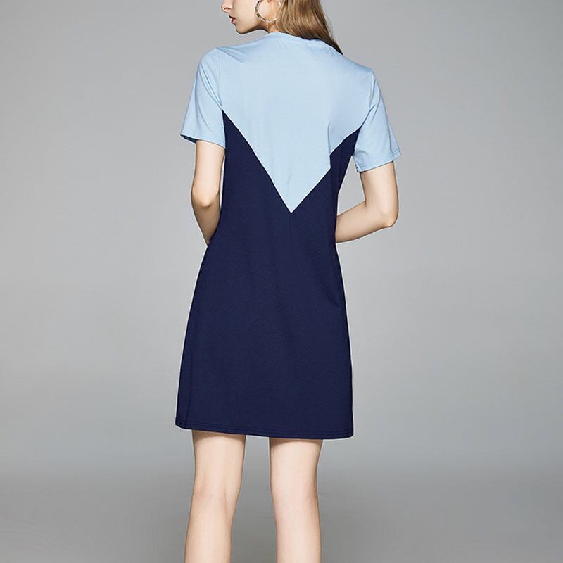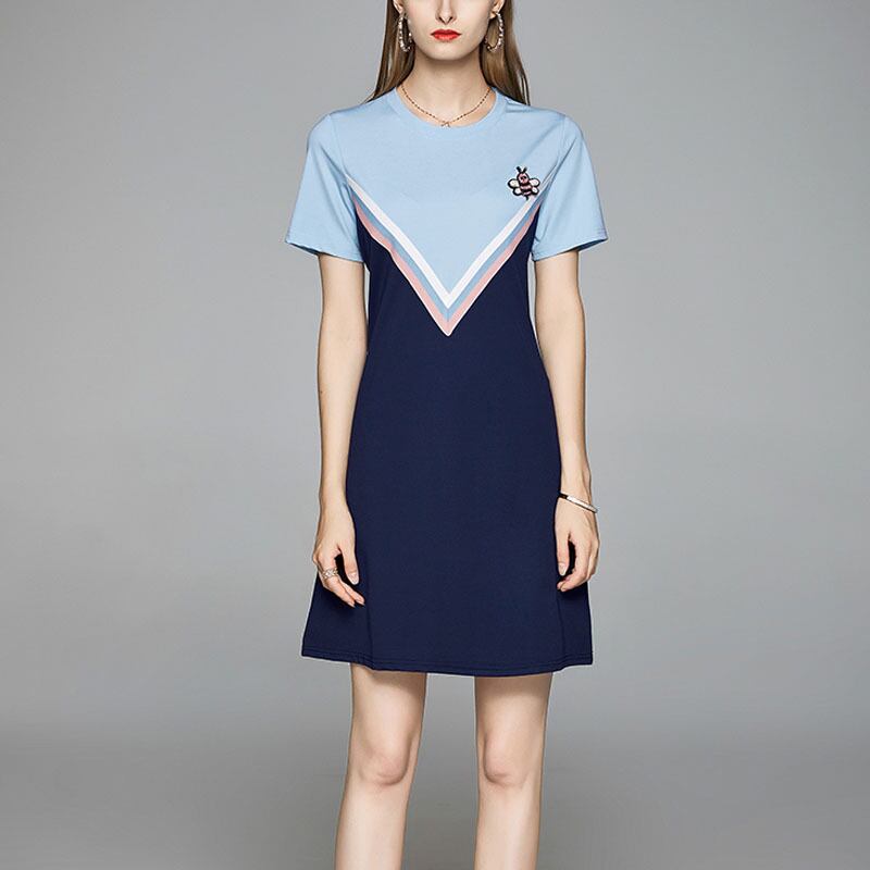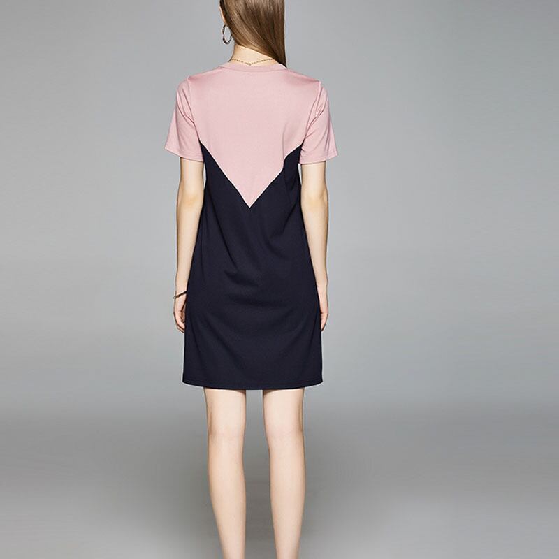 2カラー ボーダー ラウンドネック ミニ丈 半袖 ワンピース *on316