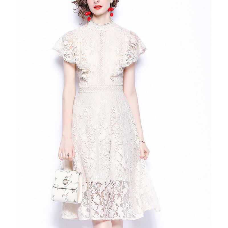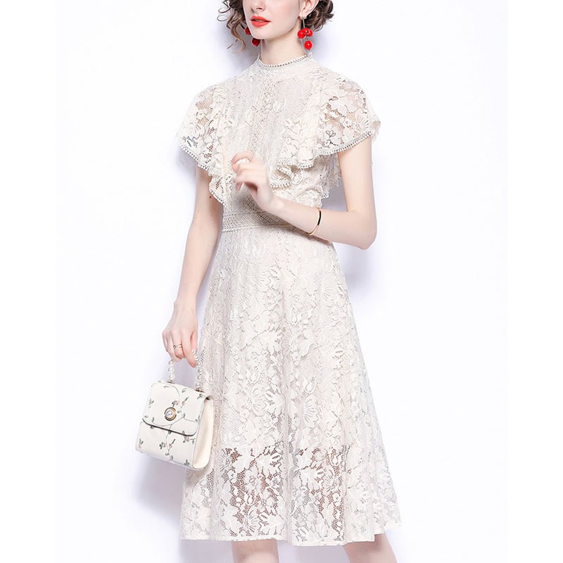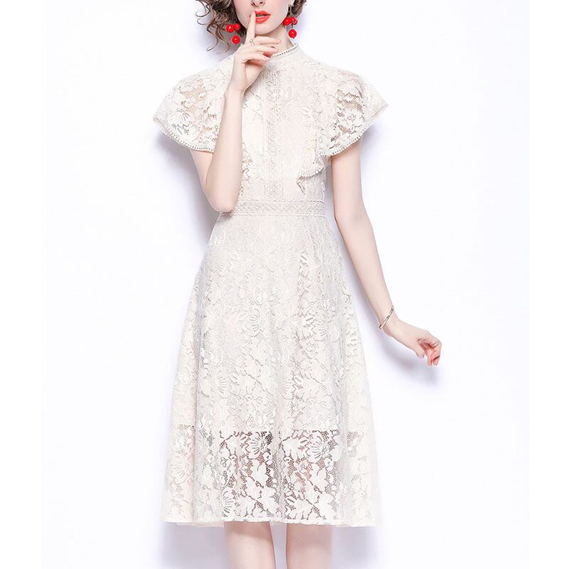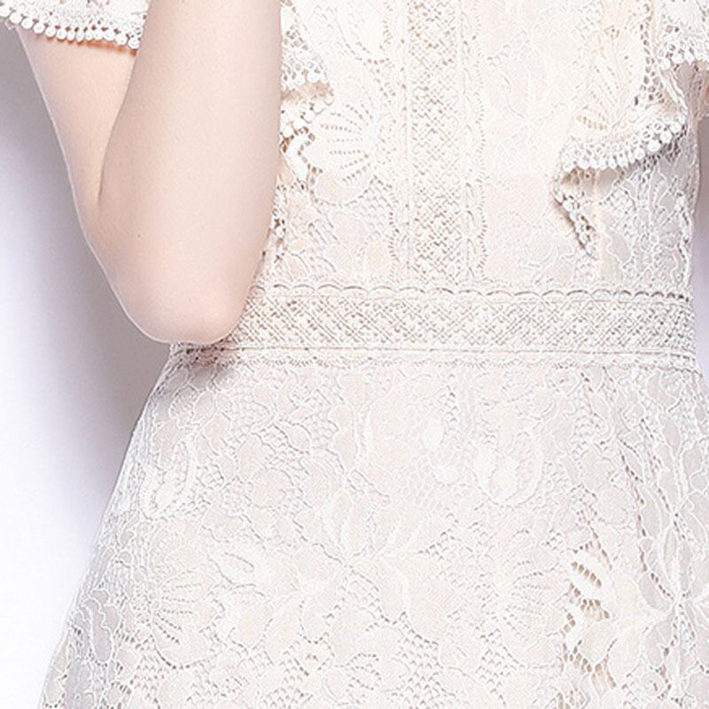 レース シアー ラウンドネック 半袖 ドレス ワンピース *on317