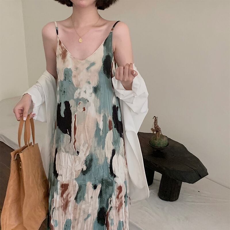 シック ペイント ノースリーブ ワンピース *on325