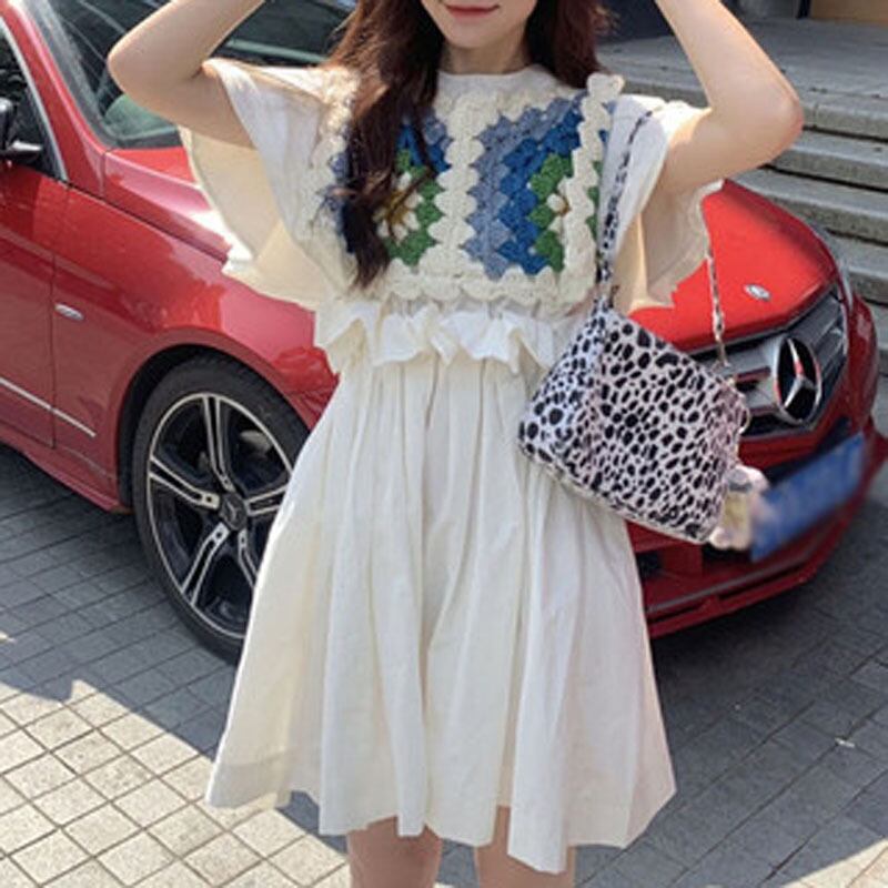 フリル 刺繍 ベスト 半袖 ワンピース *on327