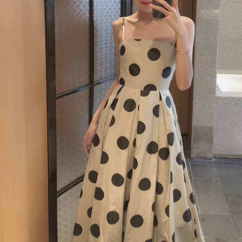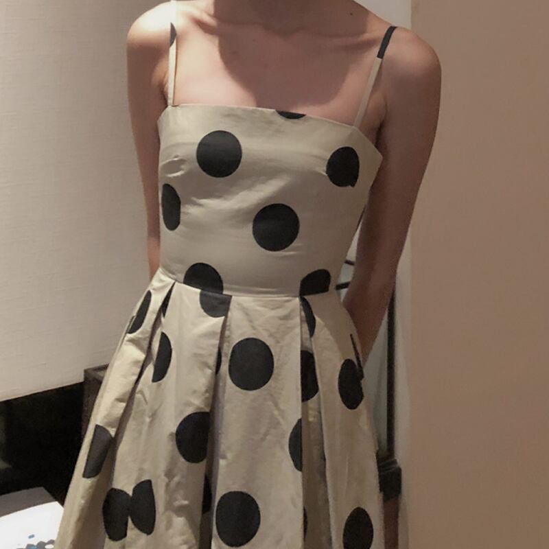 ドット柄 サスペンダー スカート ノースリーブ ワンピース *on333