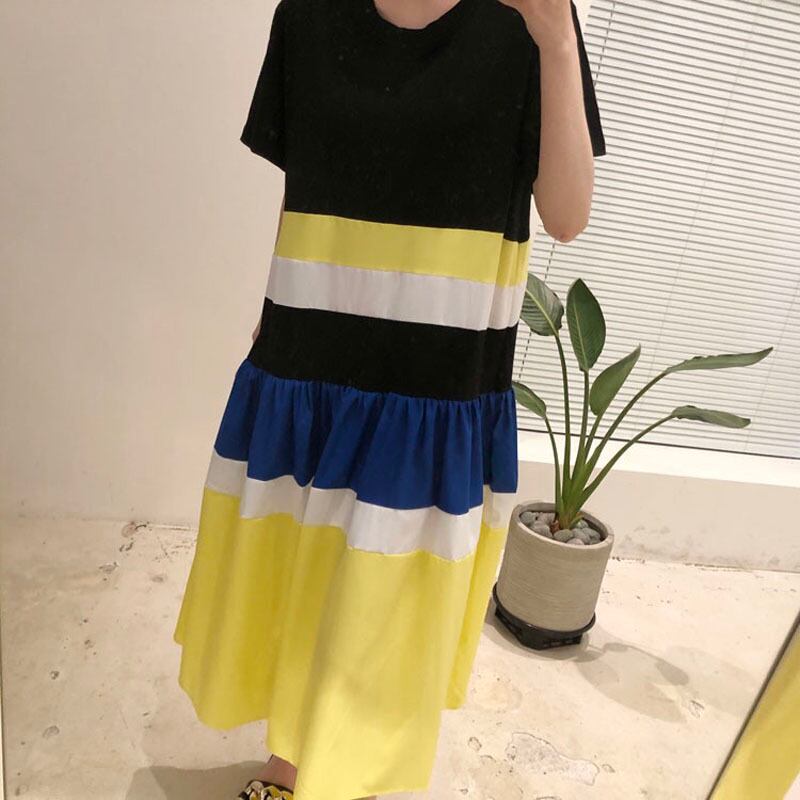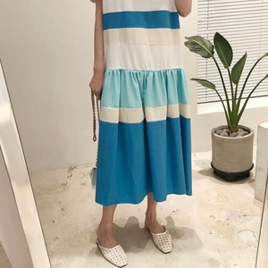 2カラー ボーダー ラウンドネック 半袖 ワンピース *on332