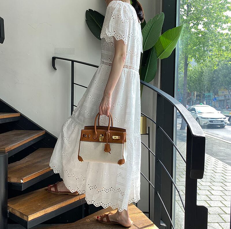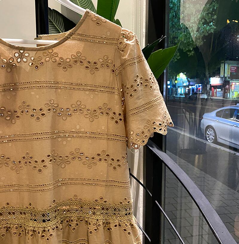 総パンチングレースで透け感やシルエットがお洒落なワンピースです。