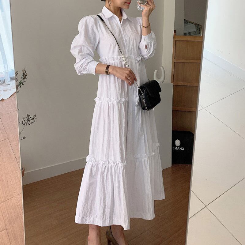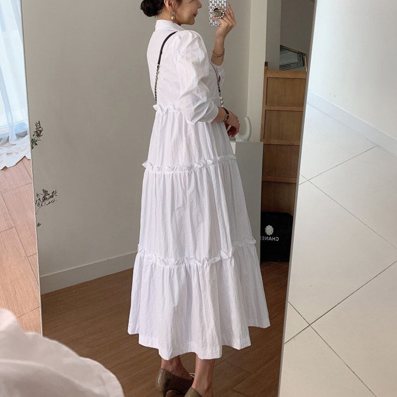 2カラー ギャザー 長袖 シャツワンピース *on338