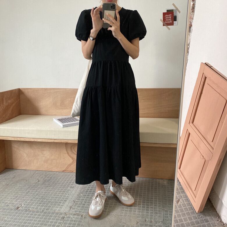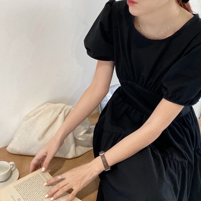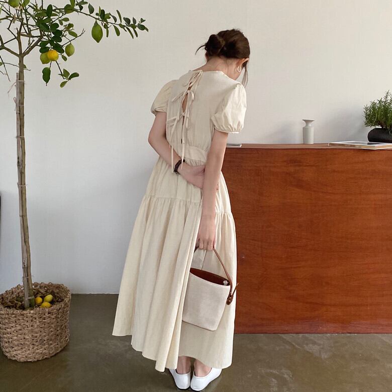 3カラー バックオープン ラウンドネック 半袖 ワンピース *on355