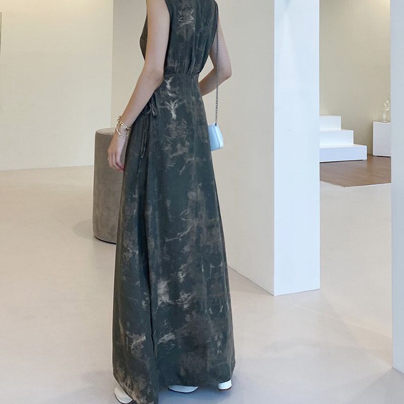 サイドオープン ラウンドネック ノースリーブ ワンピース *on356