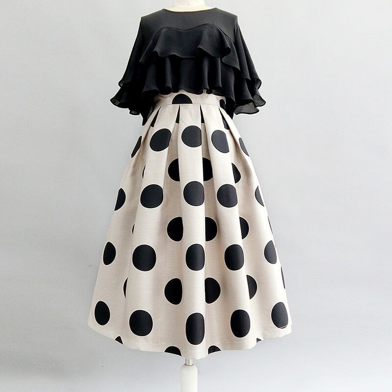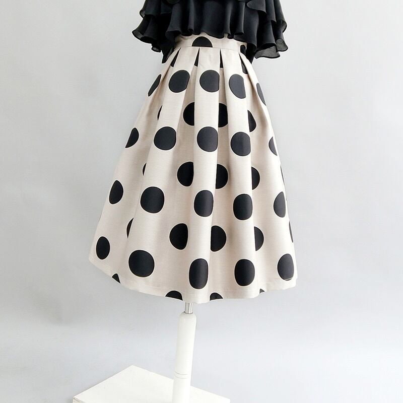 水玉柄 ハイウエスト ミドル丈 Aライン スカート *sk096