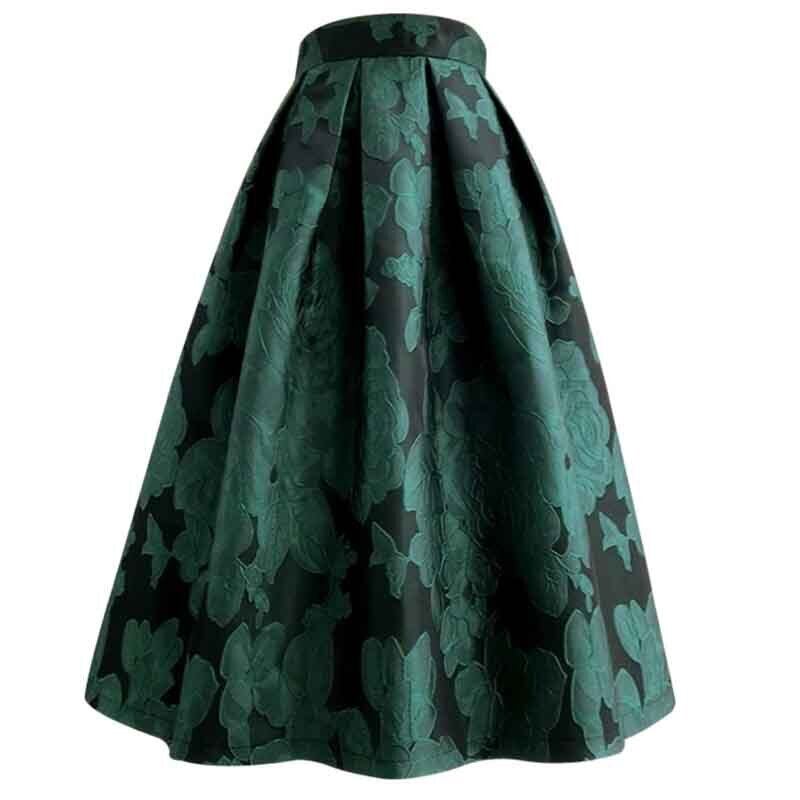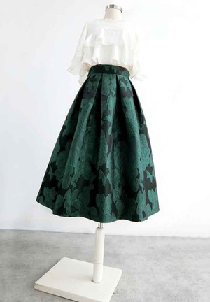 花柄 ハイウエスト 刺繍 Aライン スカート *sk100