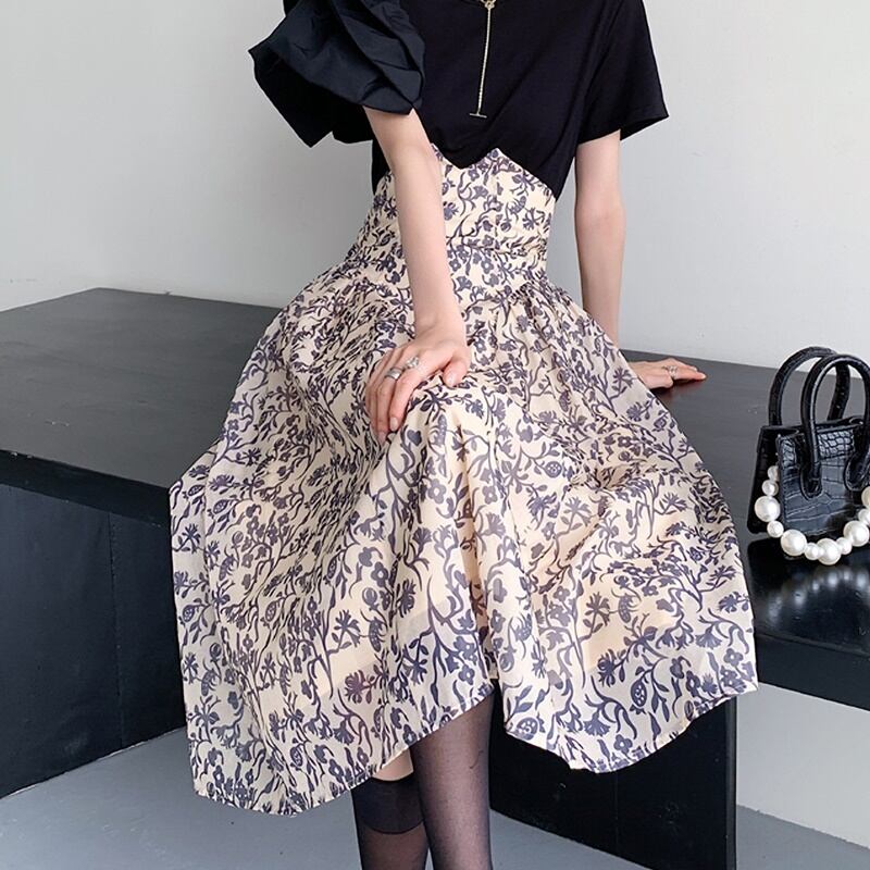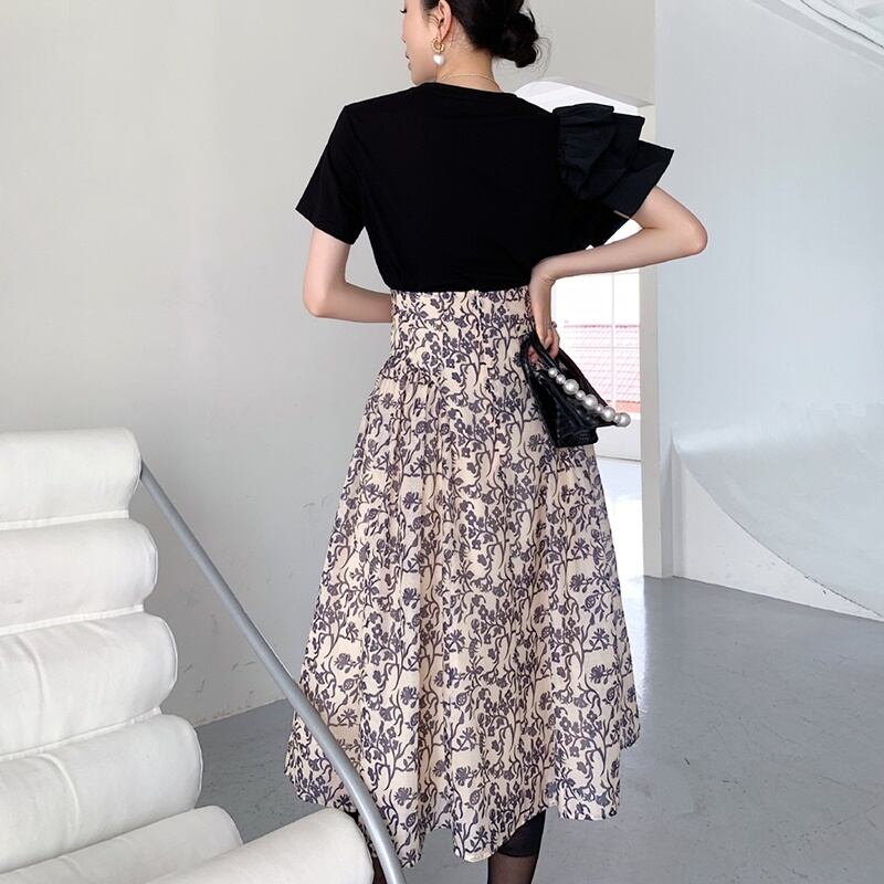 花柄 シフォン ハイウエスト Aライン スカート *sk107