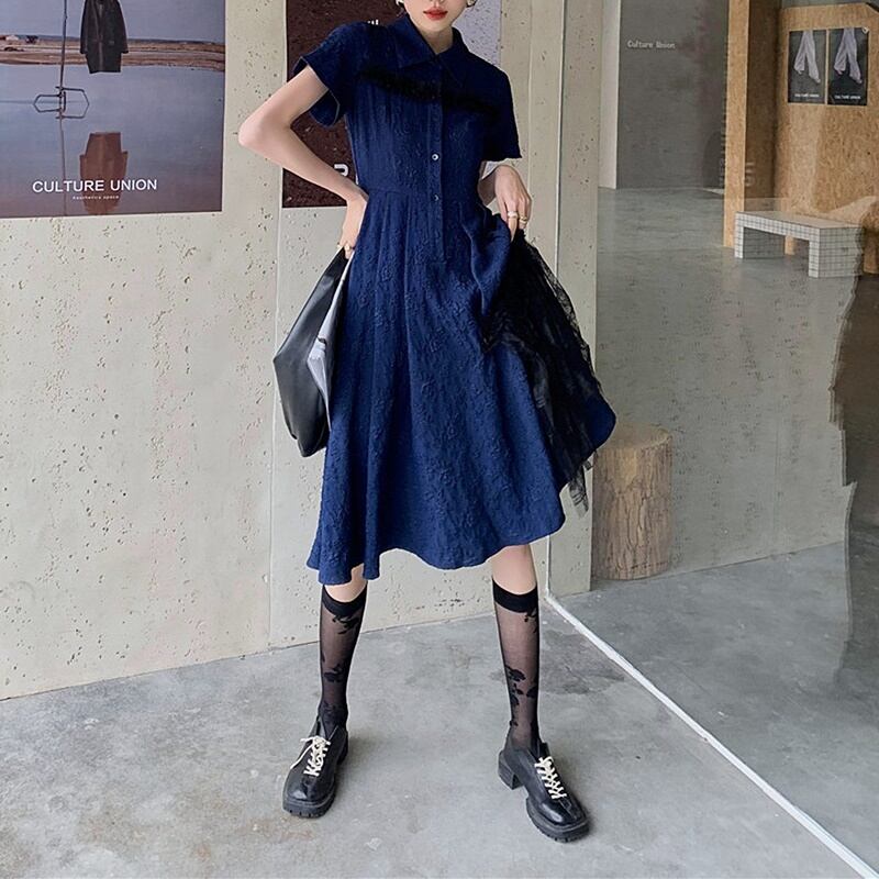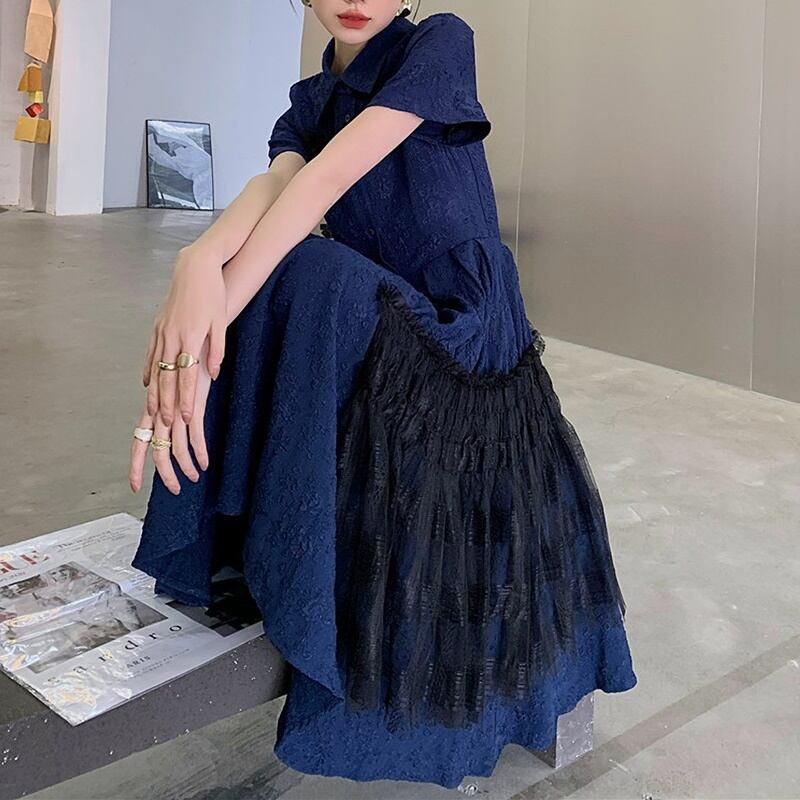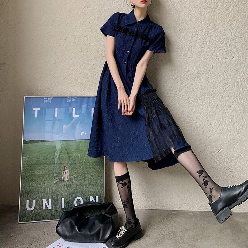 メッシュ 異素材 半袖 シャツワンピース *on382