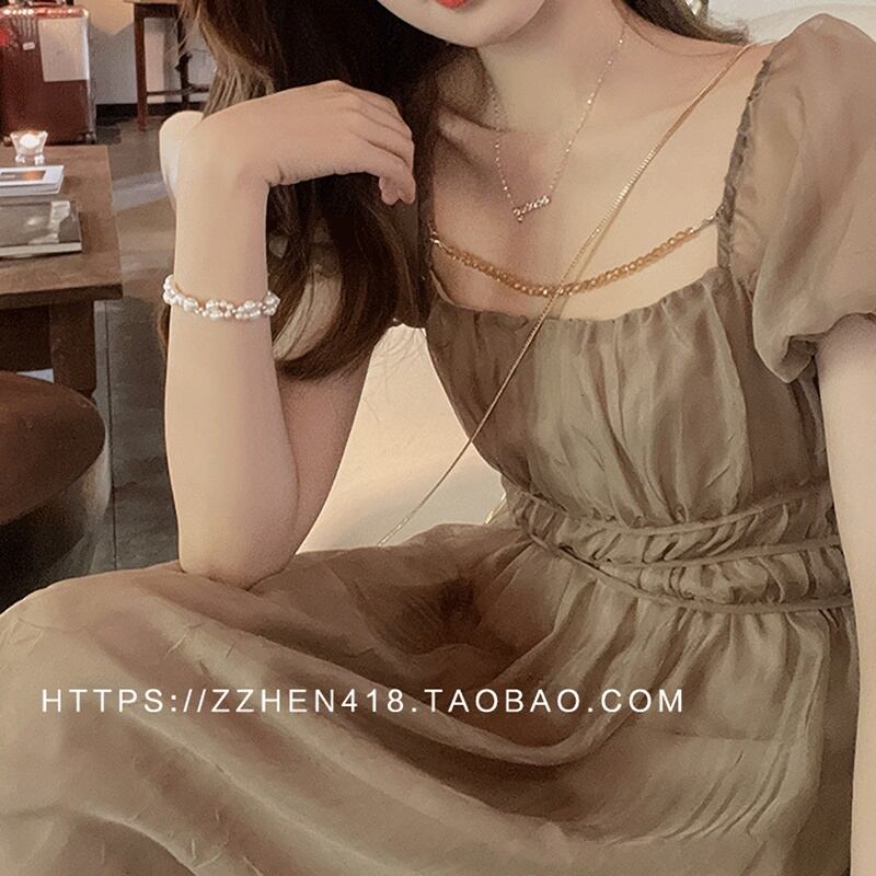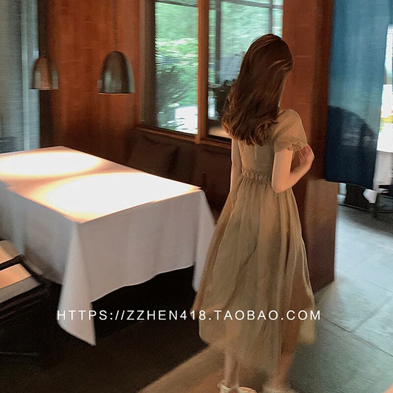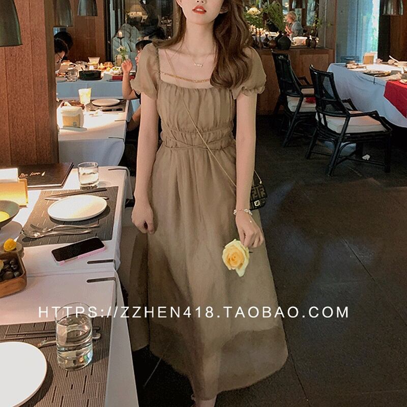 2カラー スクエアネック ハイウエスト 半袖 ワンピース *on399