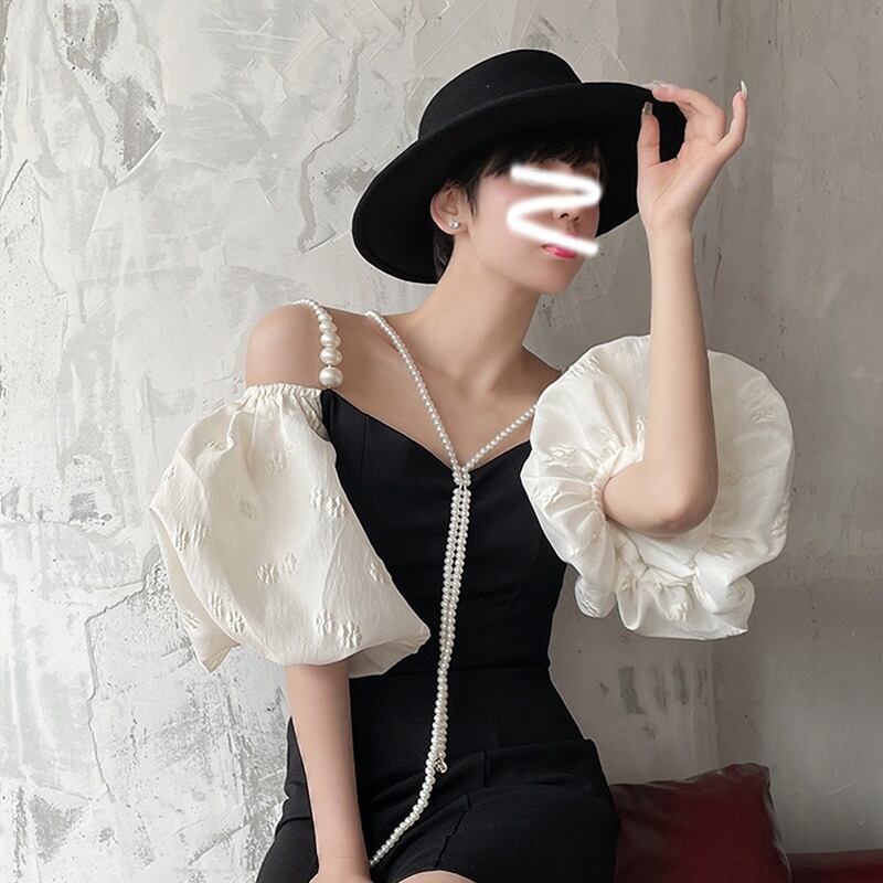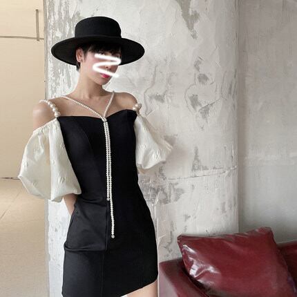 オフショルダー パール ミニ丈 半袖 ワンピース *on405