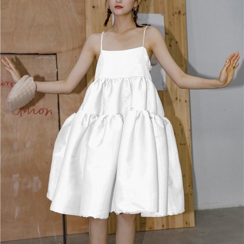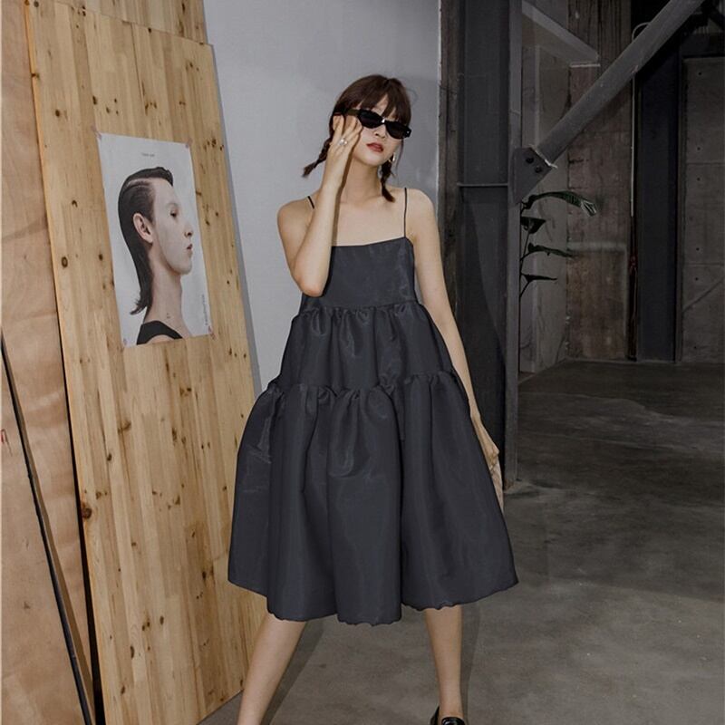 2段の切り替えギャザーデザインがふんわりとして雰囲気あるシルエットを演出。