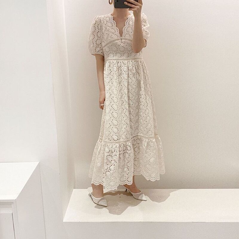 総パンチングレースで透け感やシルエットがお洒落なワンピースです。