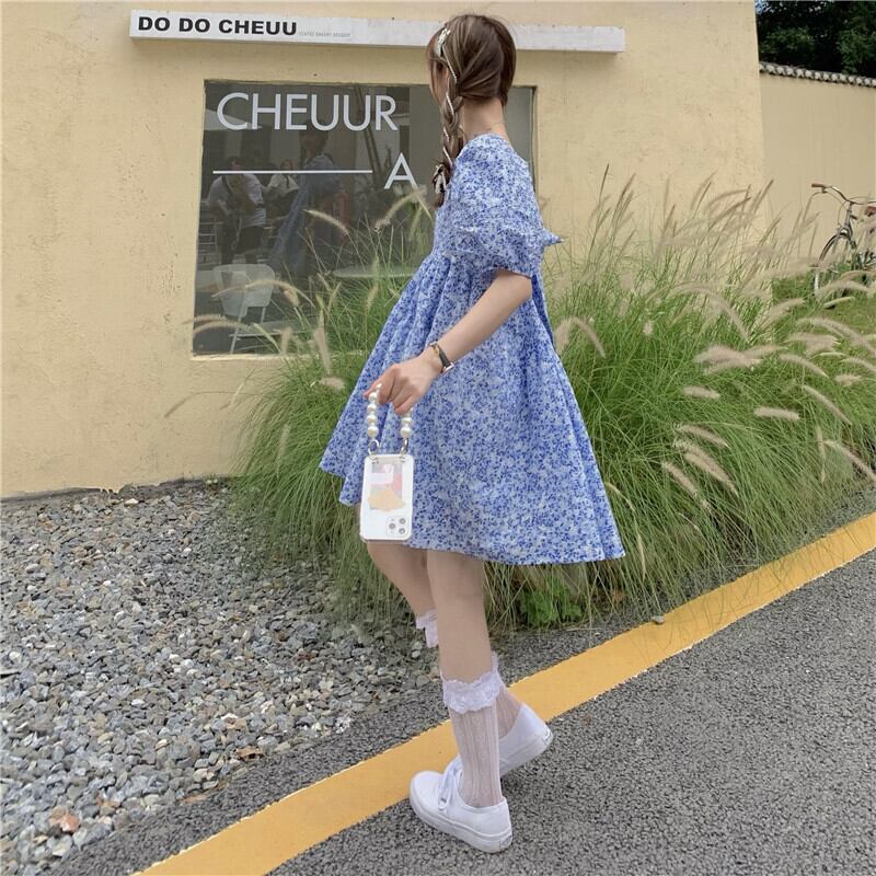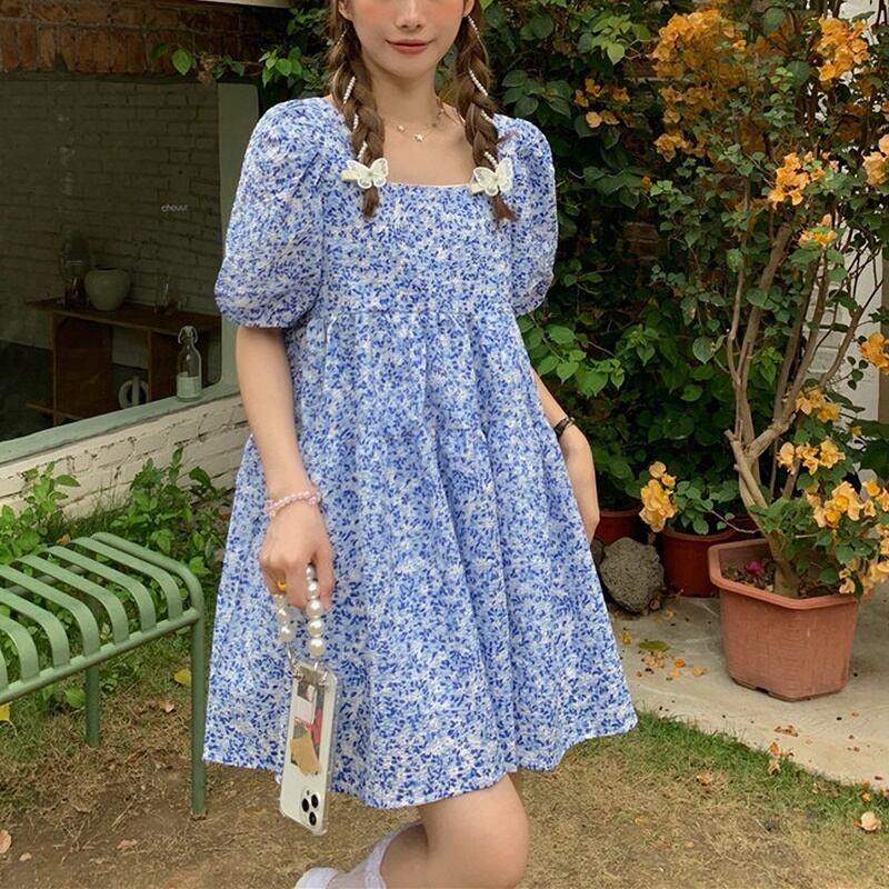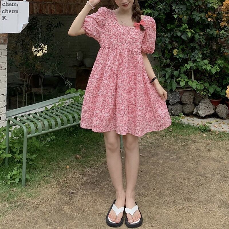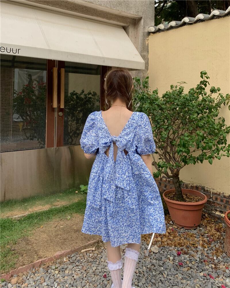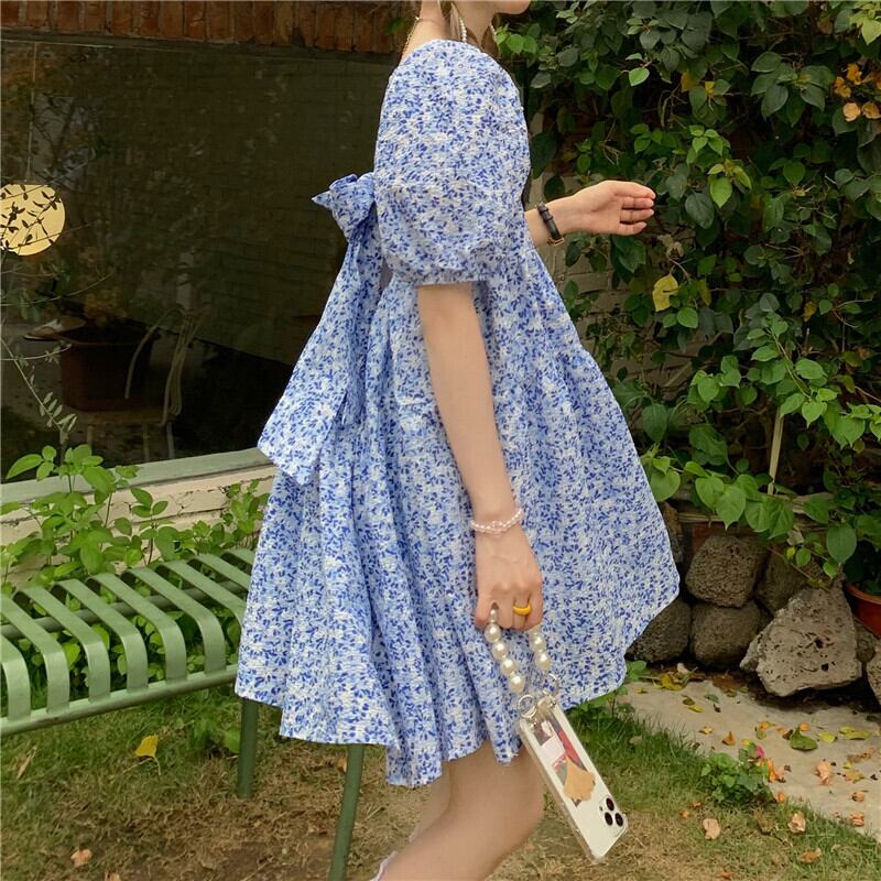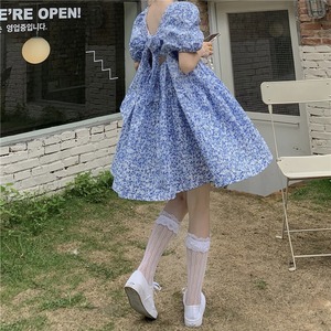 2カラー バックリボン スクエアネック 半袖 ワンピース *on421