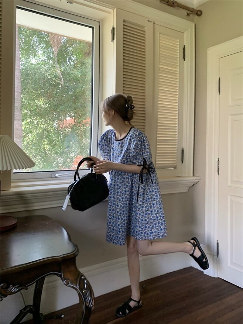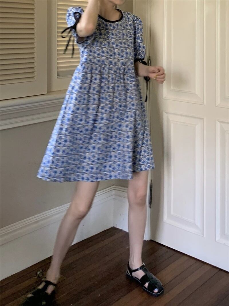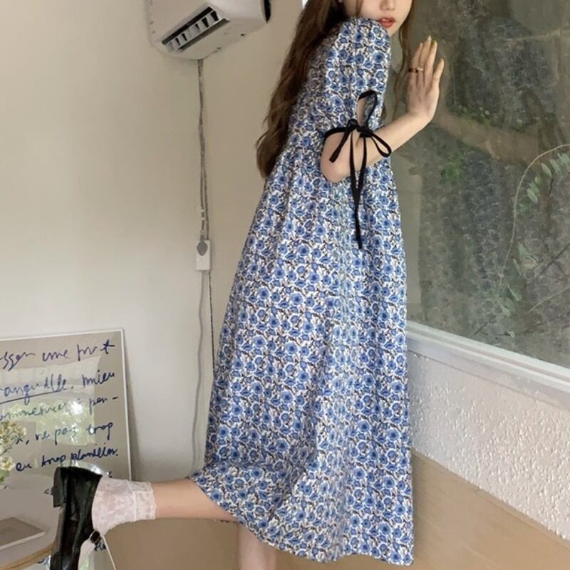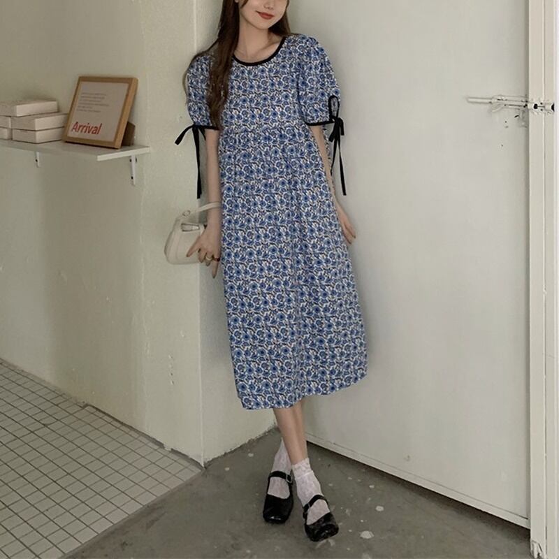 2パターン 選べる長さ 花柄 半袖 ワンピース *on425