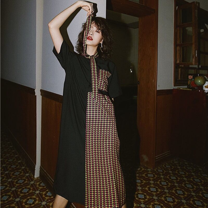 ネクタイ アシンメトリー リボン 半袖 ワンピース *on427