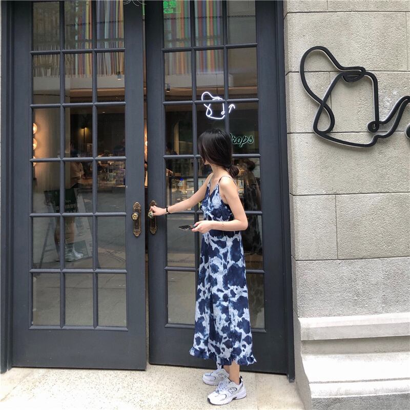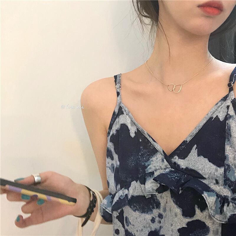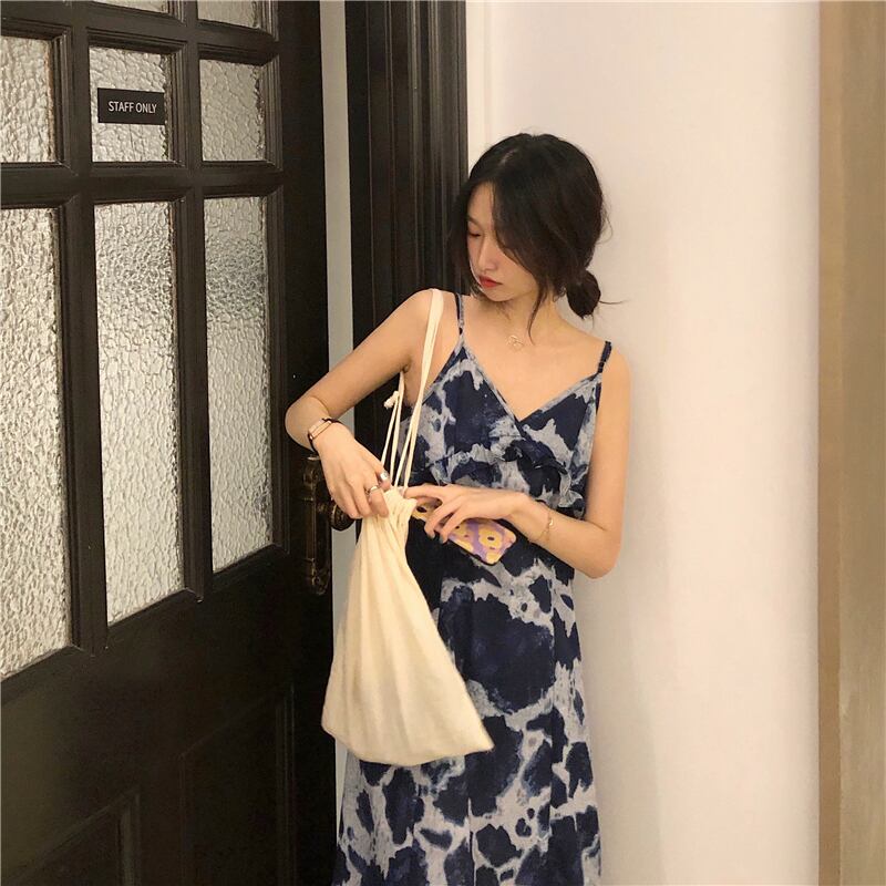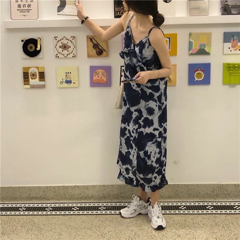 ペイント柄 Vネック ノースリーブ ワンピース *on444