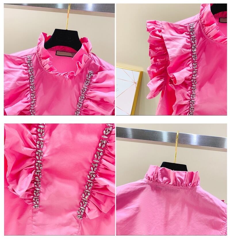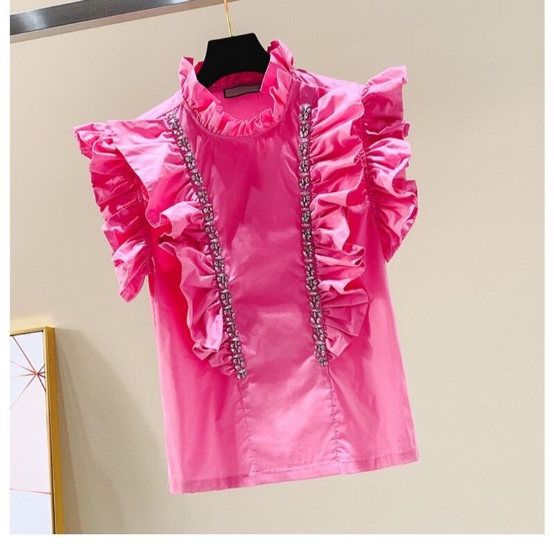 フリル ビジュー ノースリーブ シャツ ブラウス *bl240