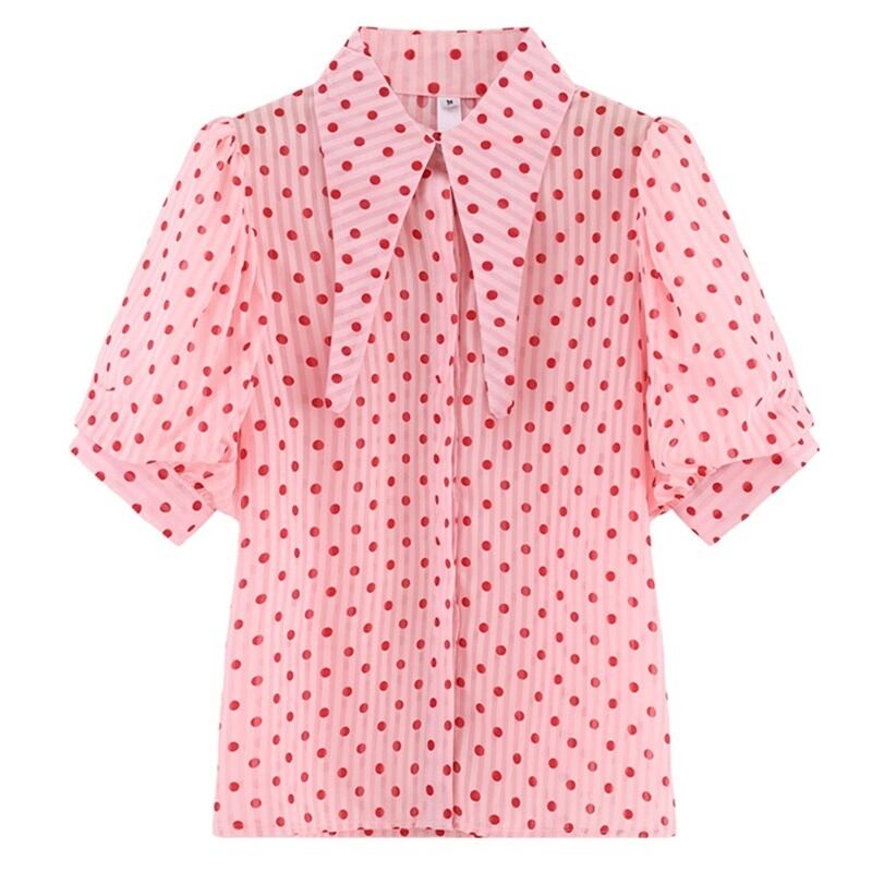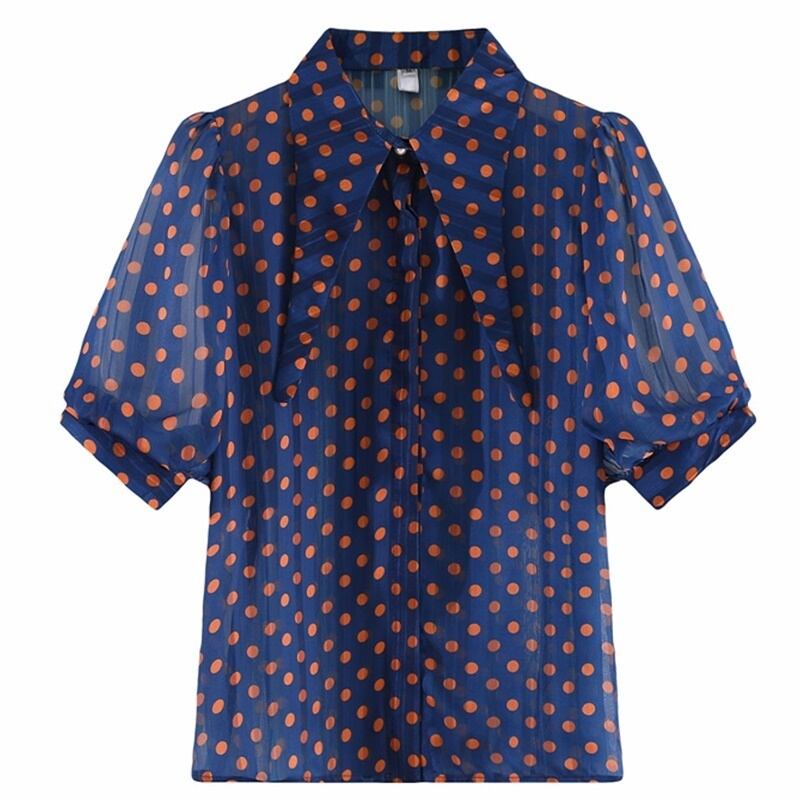 4カラー ドット シアー 半袖 シャツ ブラウス *bl244