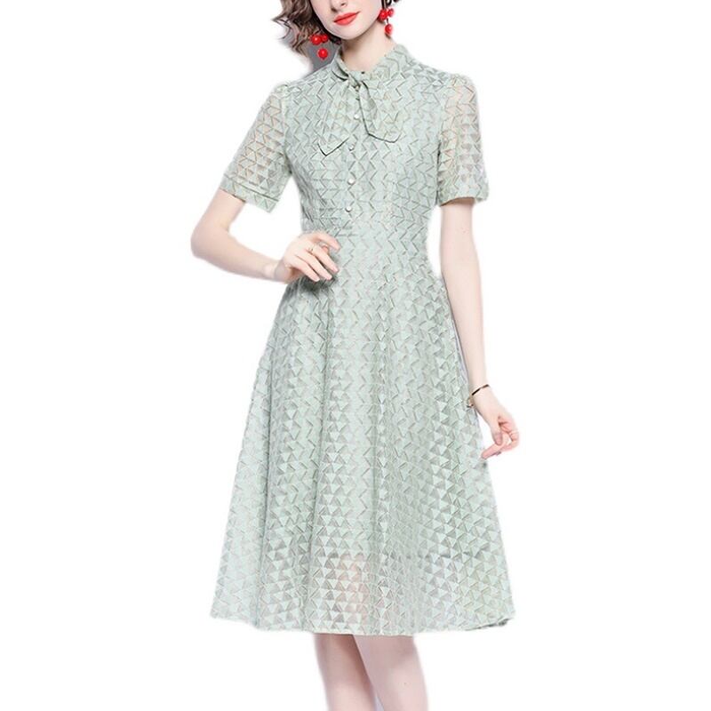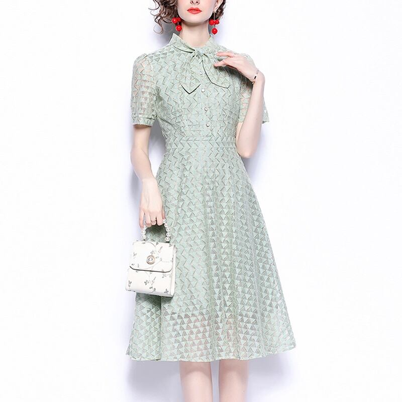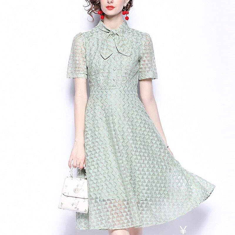 三角柄 シフォン シアー リボン 半袖 ワンピース *on448