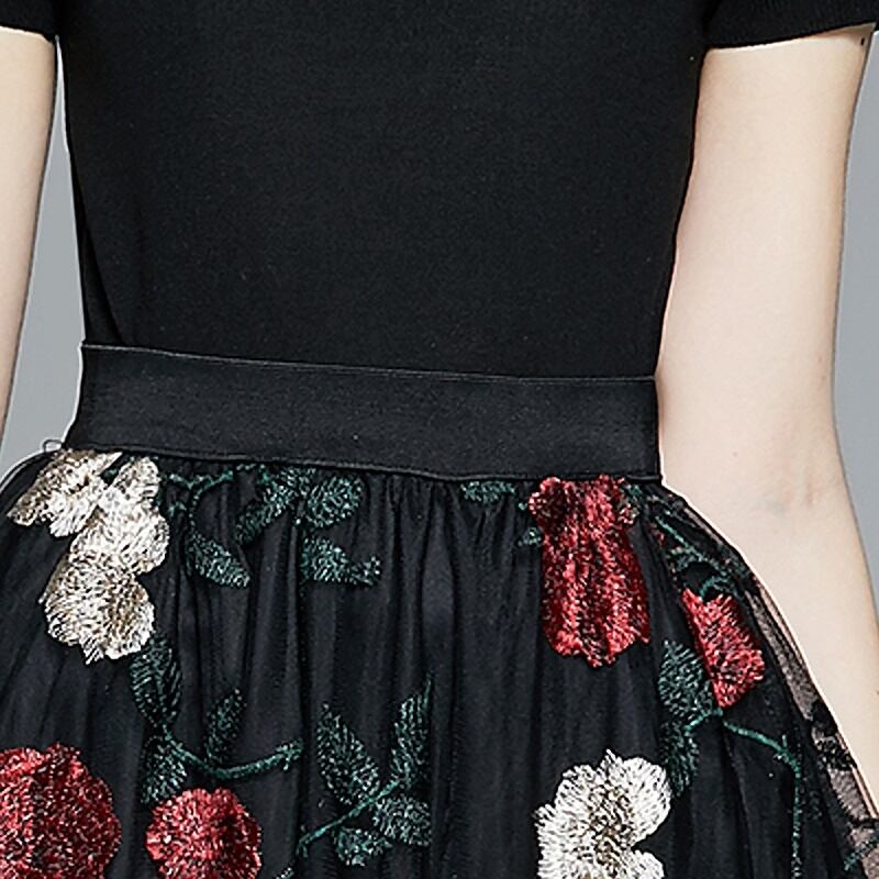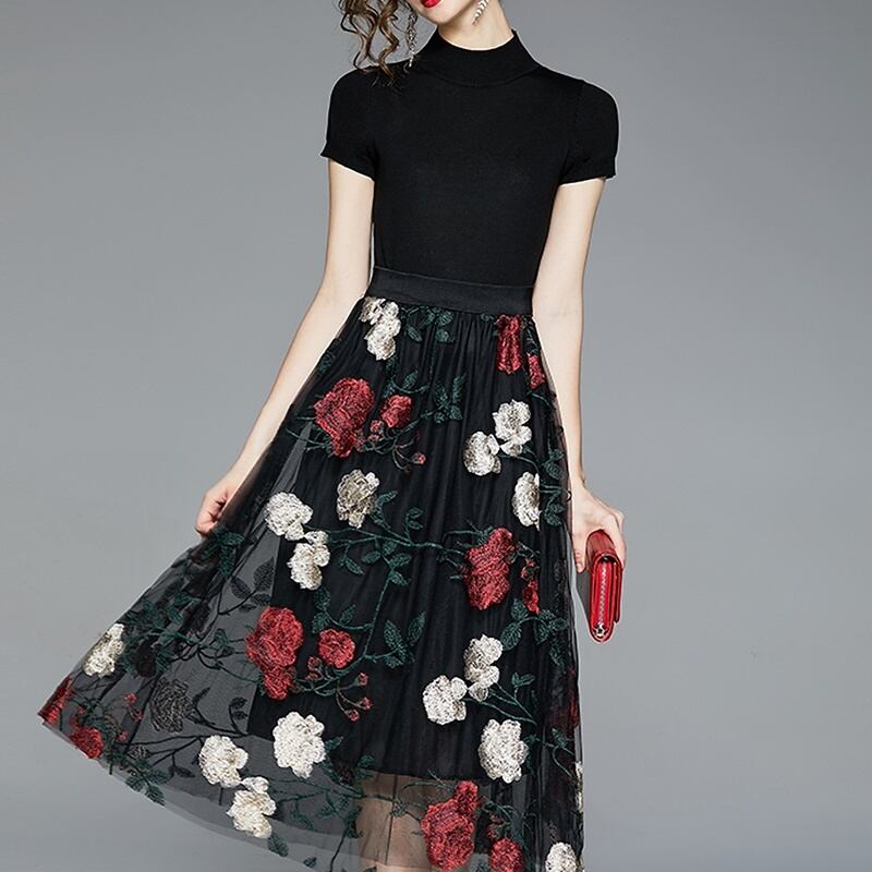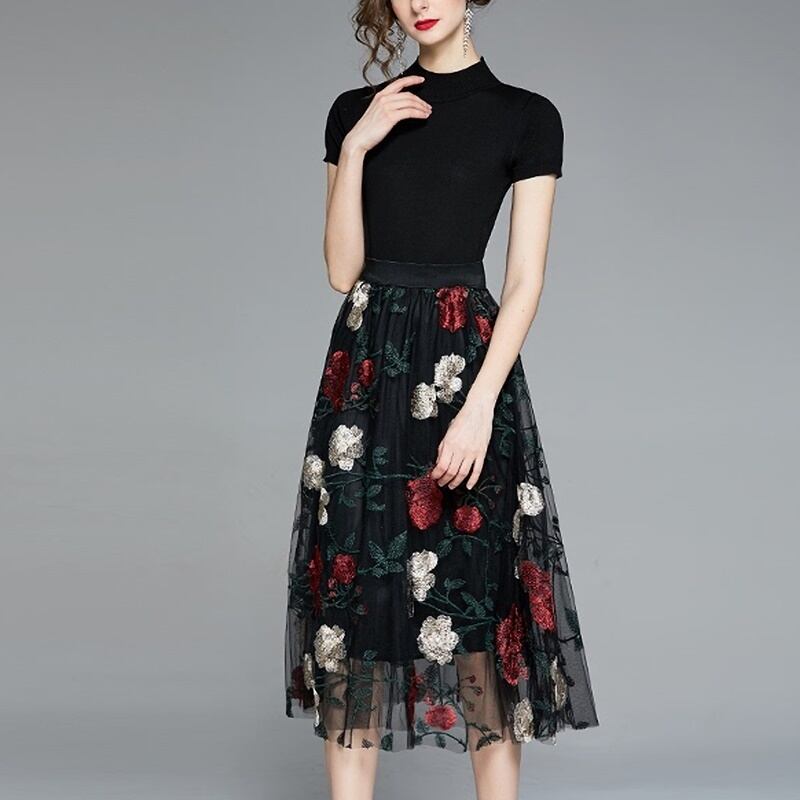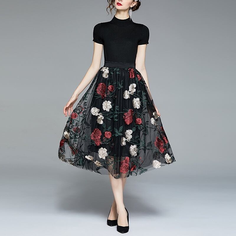 花柄スカートとブラックのトップスのセットです。