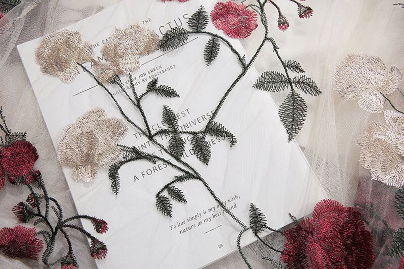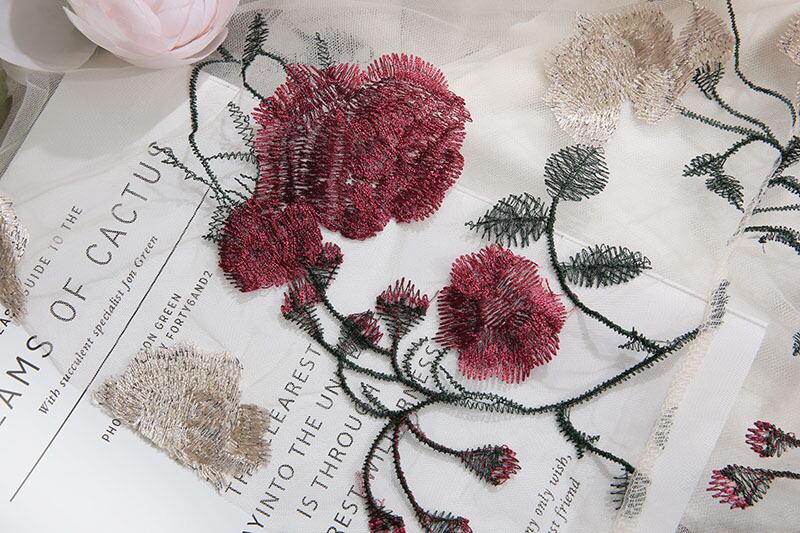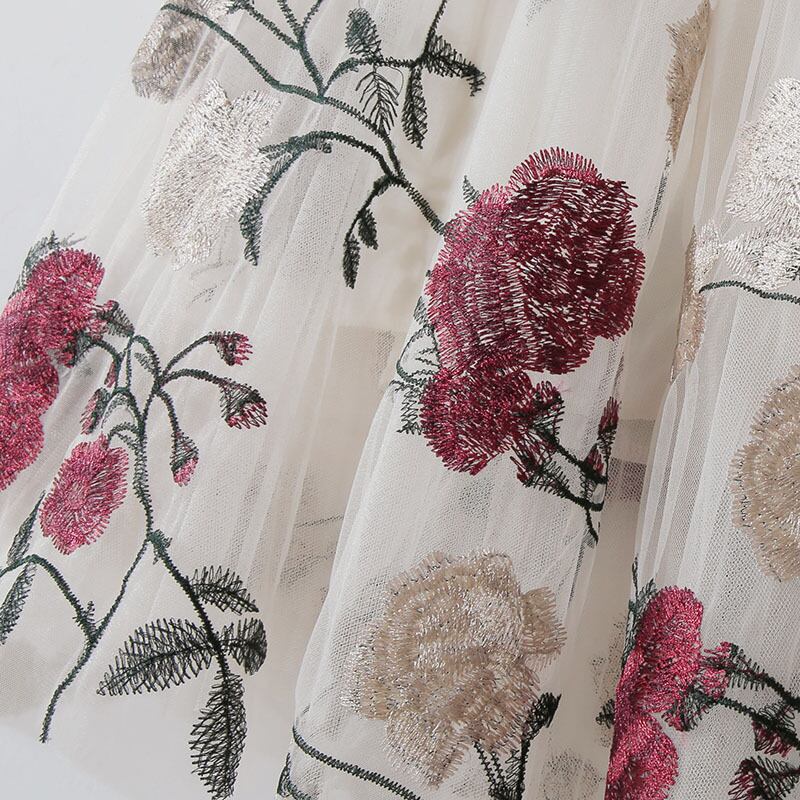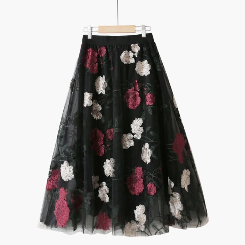 2カラー 花柄 刺繍 シフォン Aライン スカート *sk123