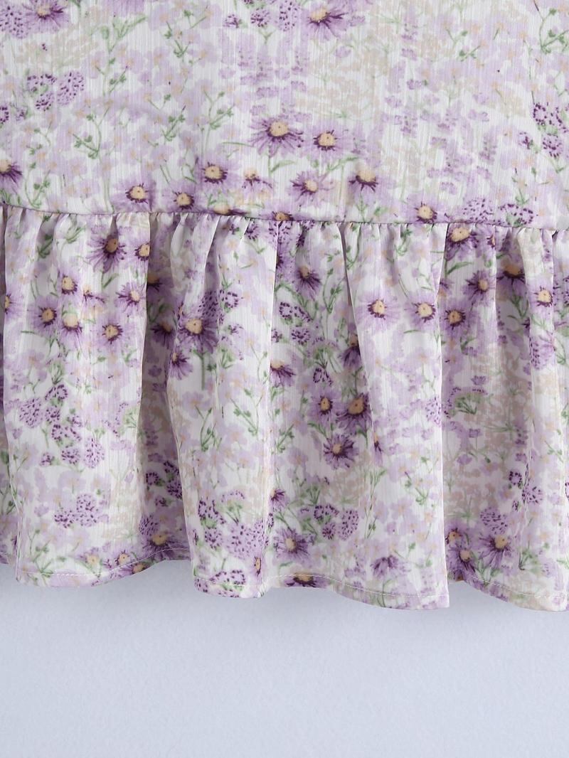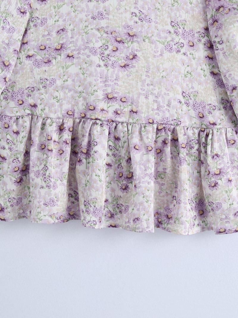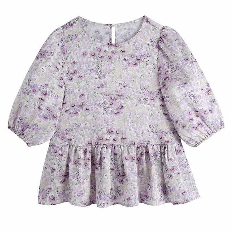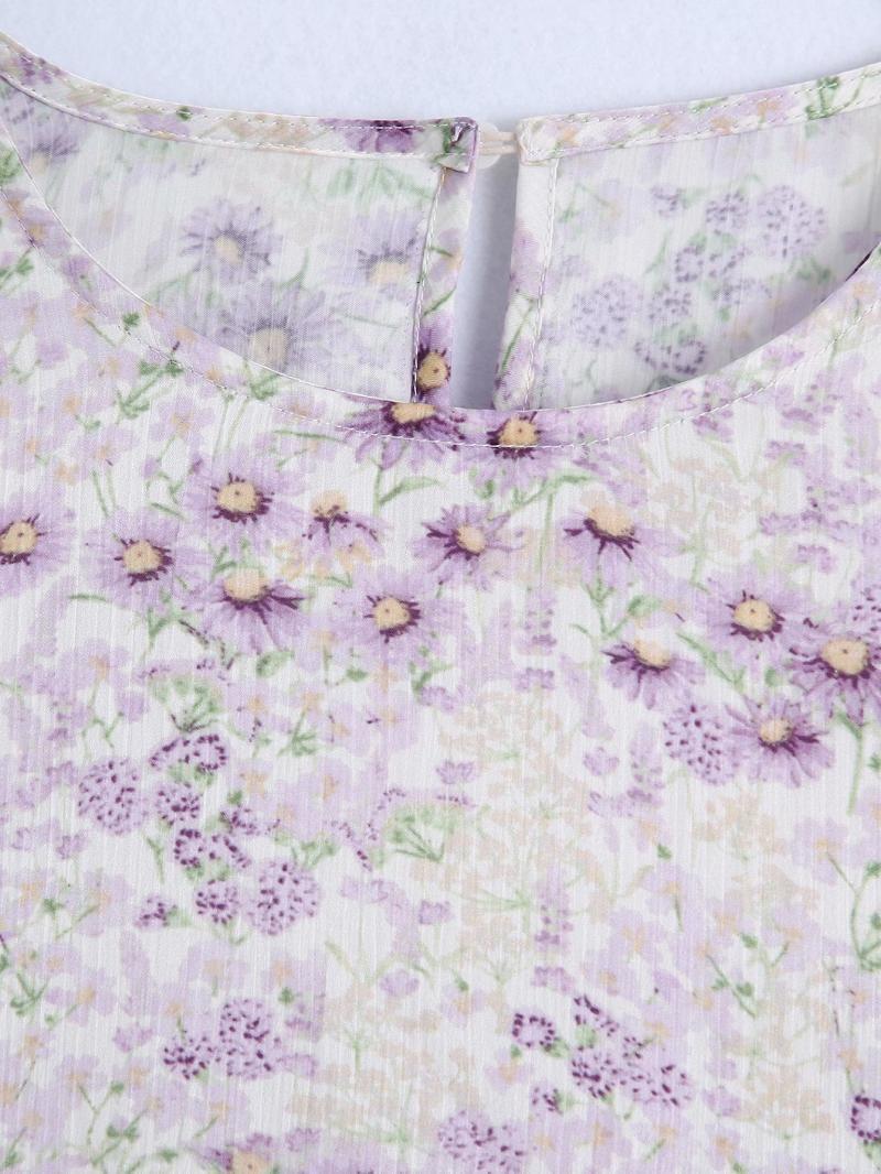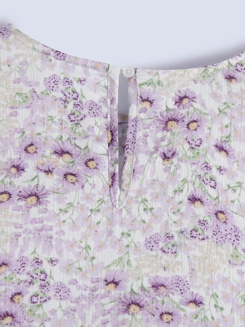 花柄 ラウンドネック パフスリーブ 半袖 シャツ ブラウス *bl257