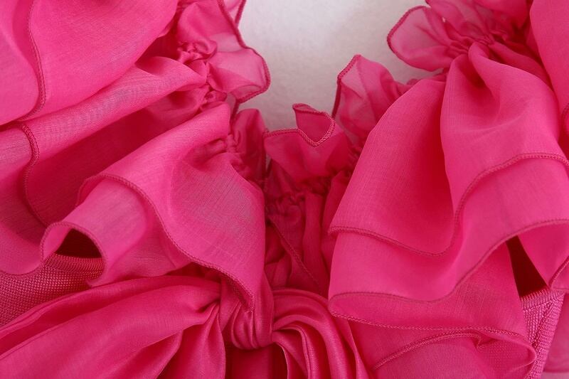 フリルを重ねた立体感のあるフリルワークが目を引くブラウスです。