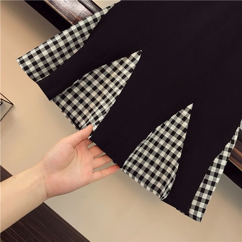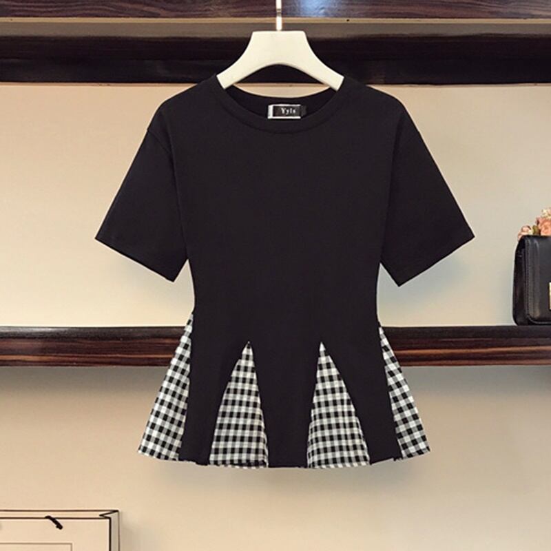 2カラー チェック柄 ラウンドネック 半袖 シャツ ブラウス *bl262