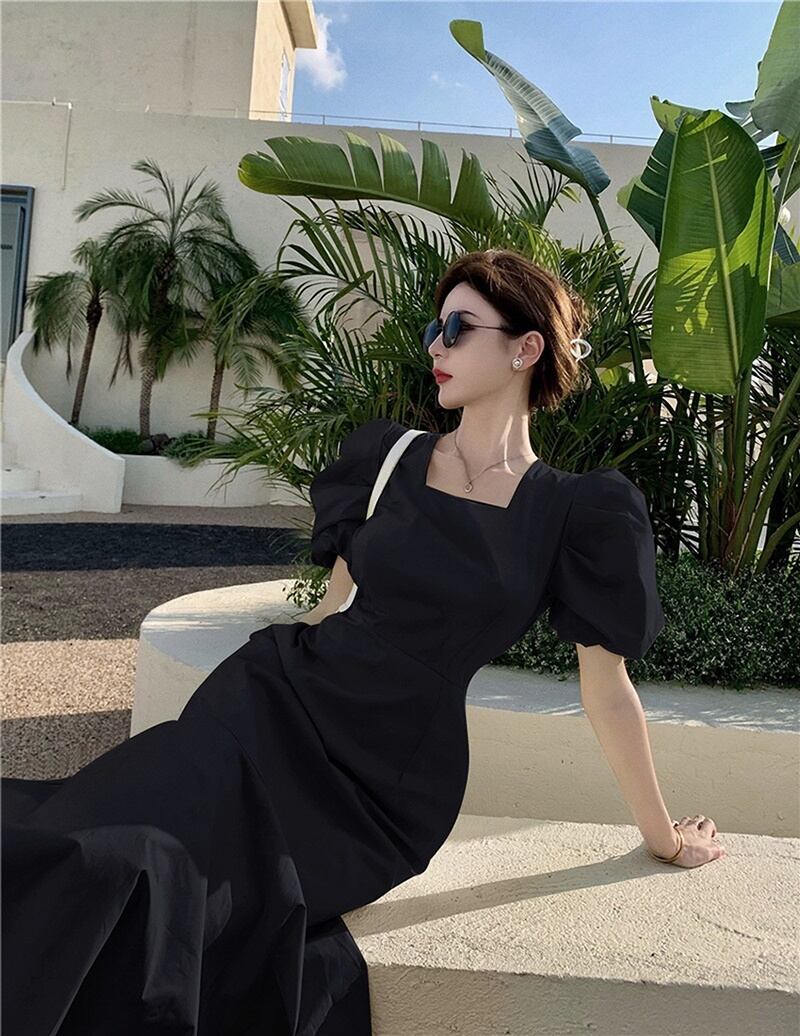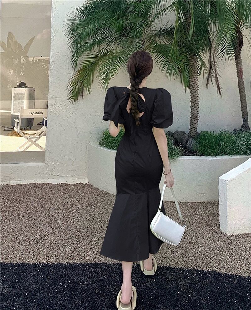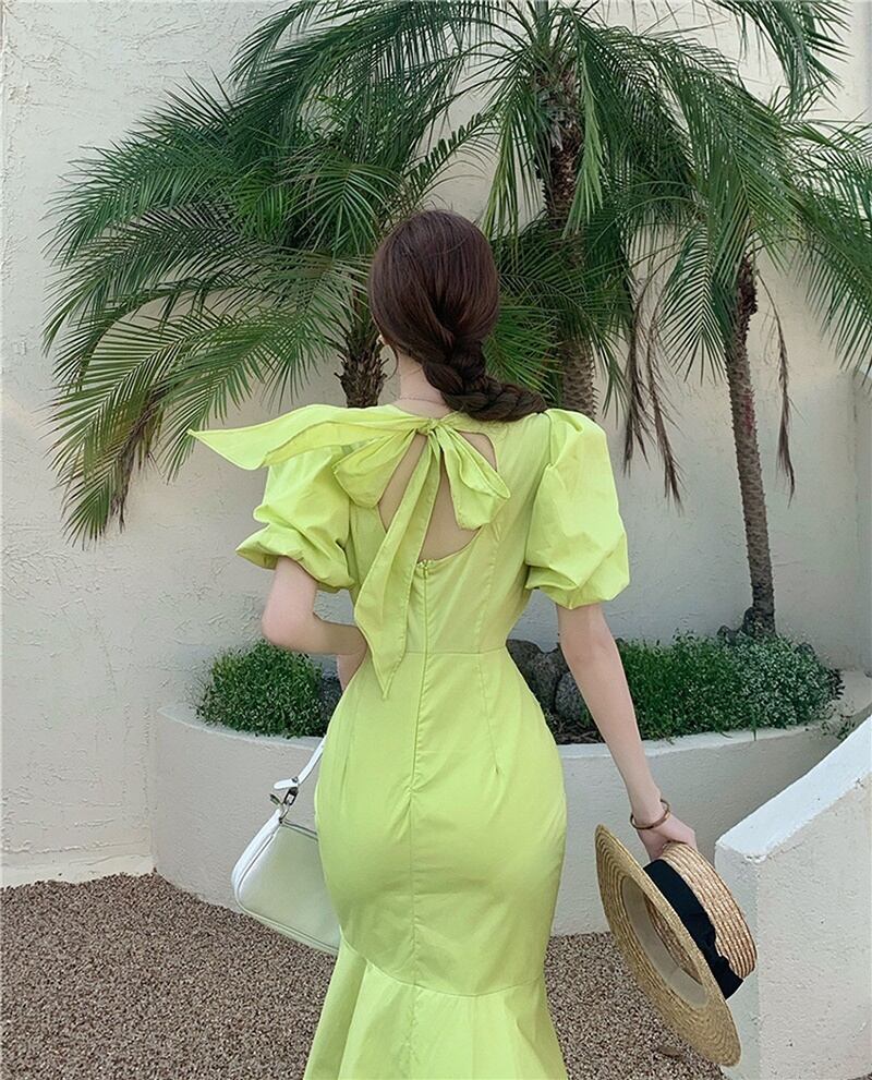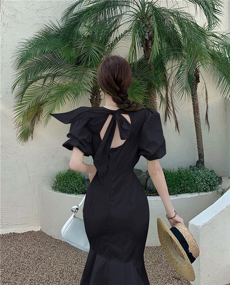 2カラー スクエアネック マーメイド 半袖 ワンピース *on476