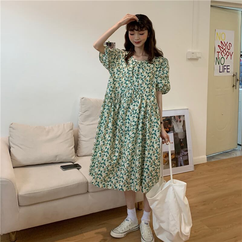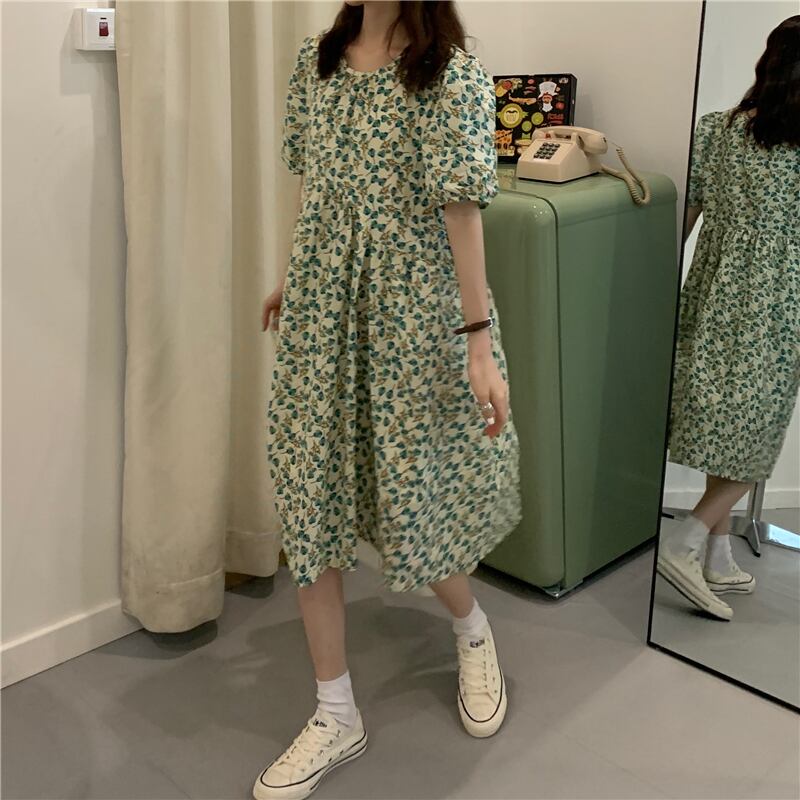 花柄 ラウンドネック 半袖 ワンピース *on484