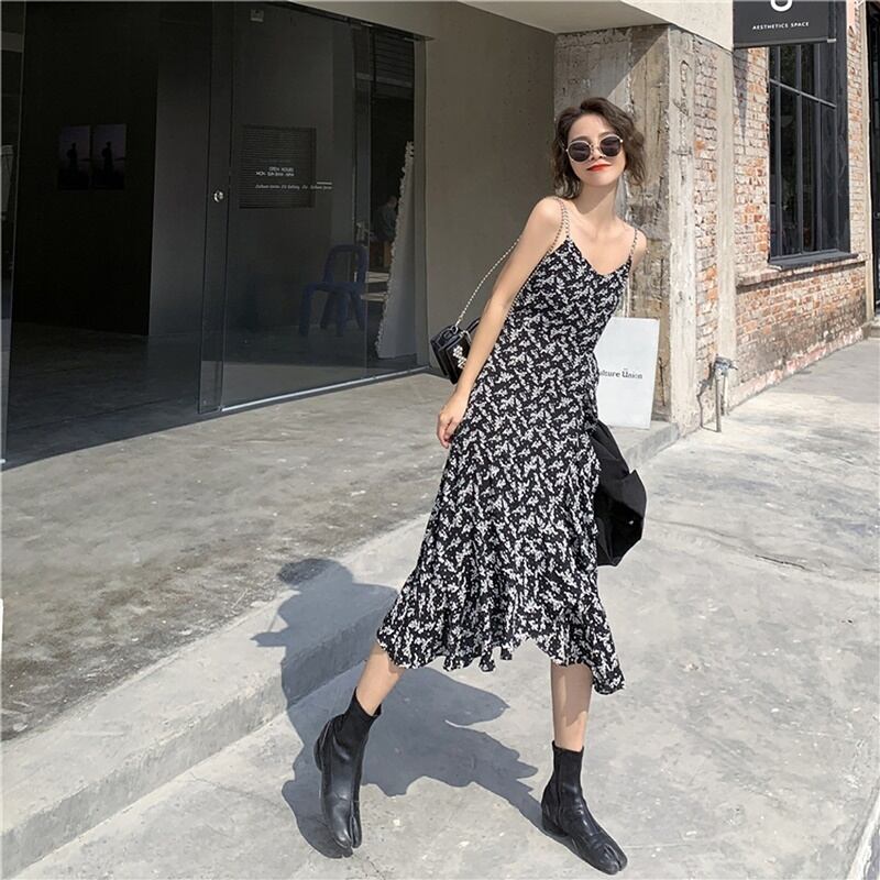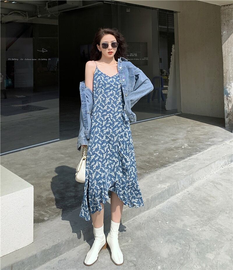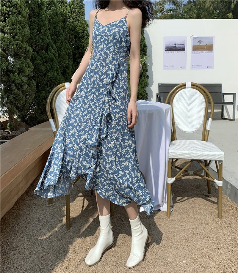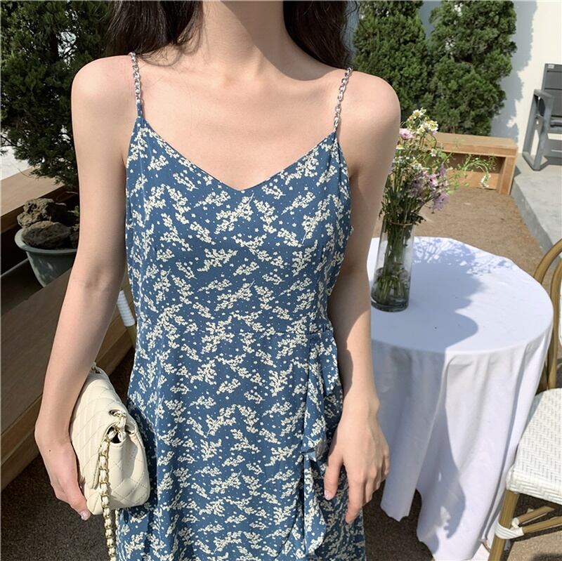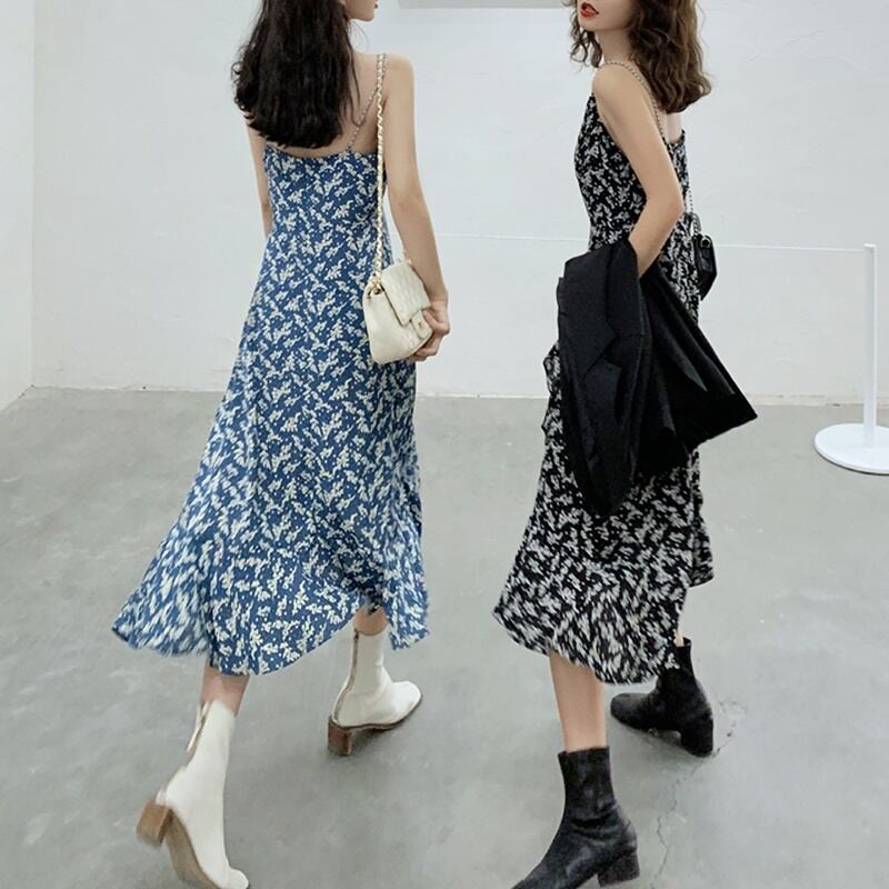 2カラー 花柄 Vネック ノースリーブ ワンピース *on486