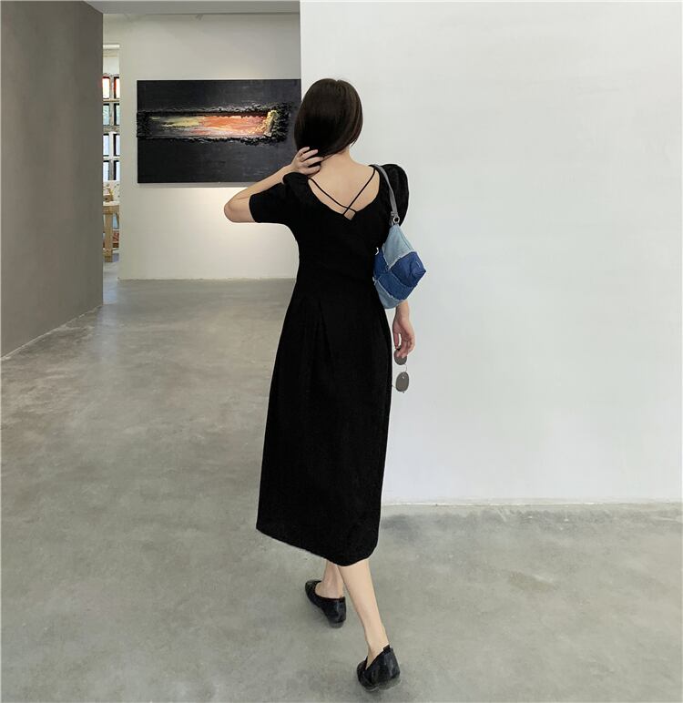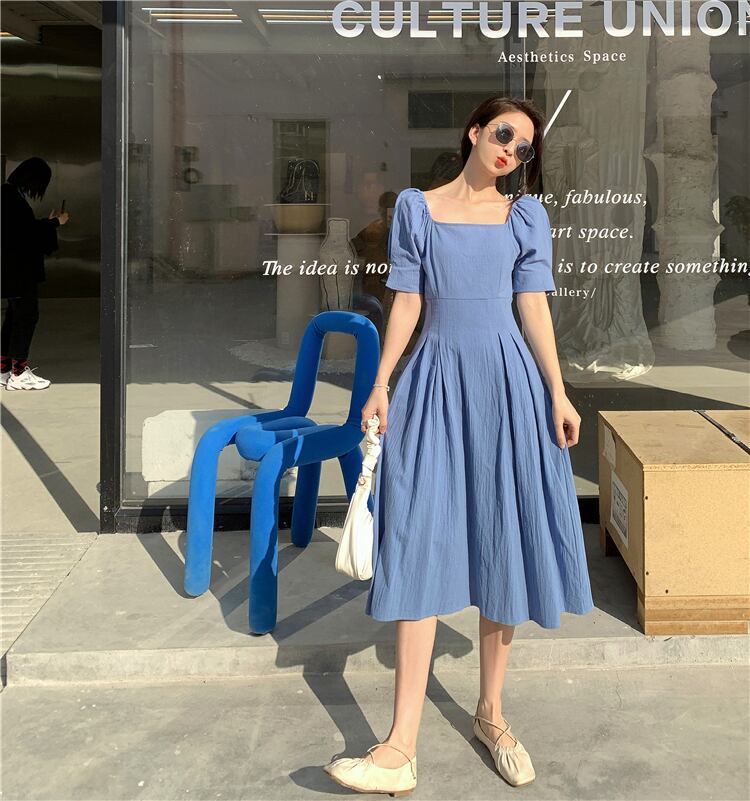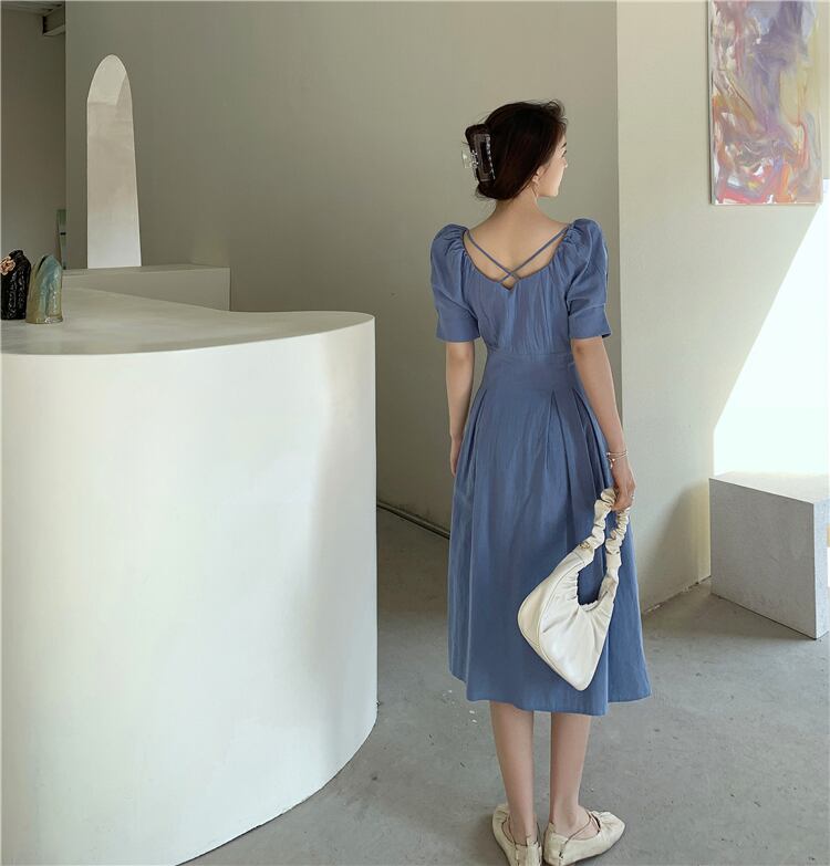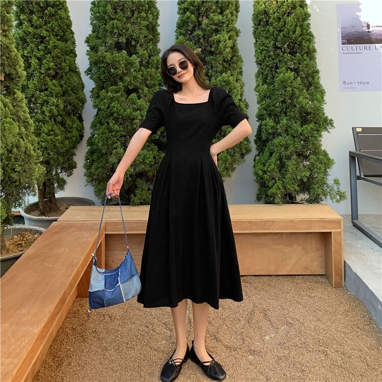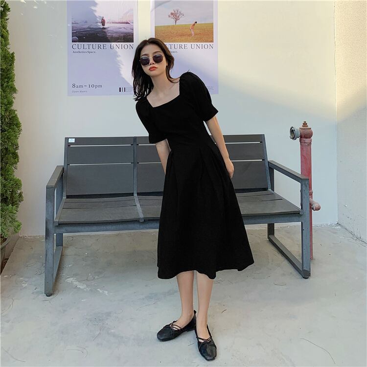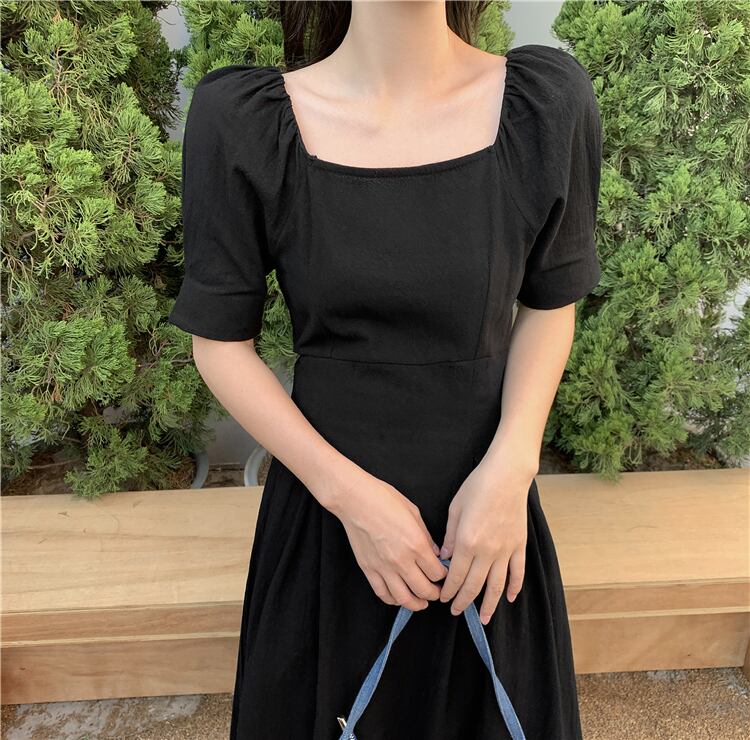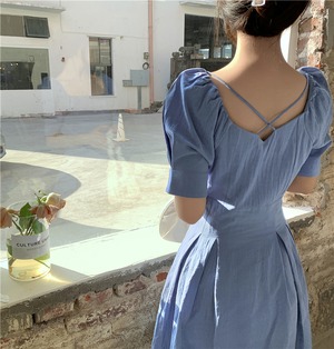 2カラー シック スクエアネック 半袖 ワンピース *on487
