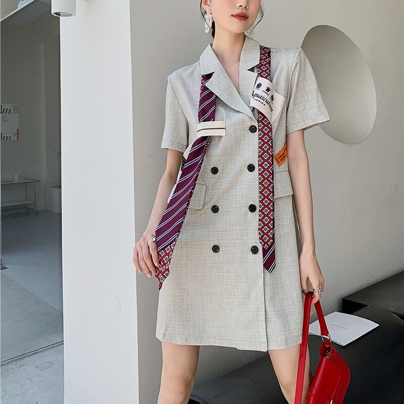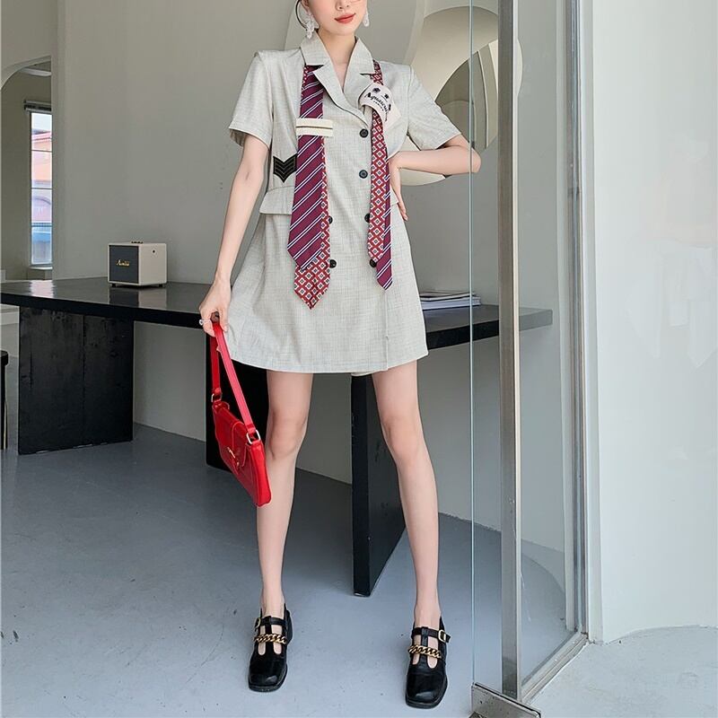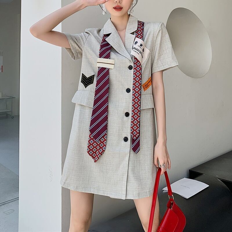 ネクタイ ボーダー 半袖 シャツワンピース *on499