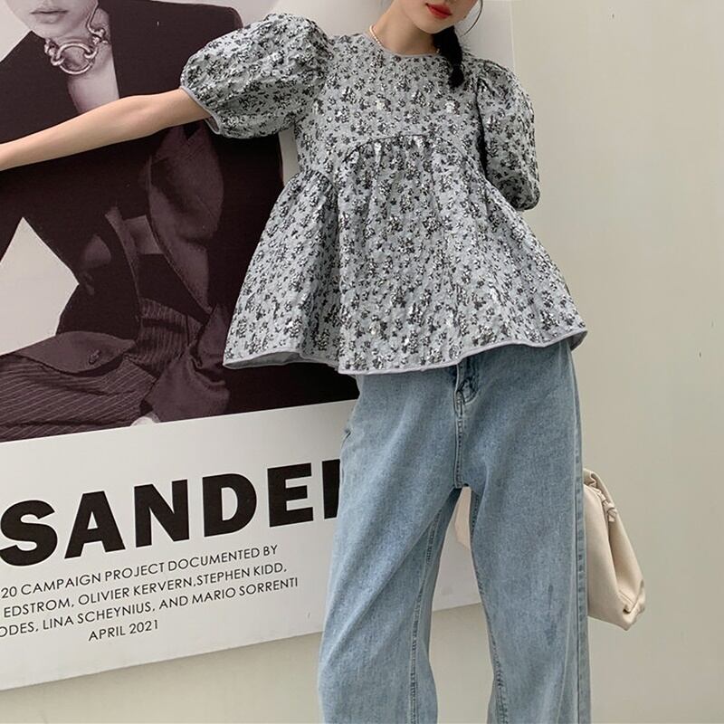 花柄 半袖 パフスリーブ シャツ ブラウス *bl265