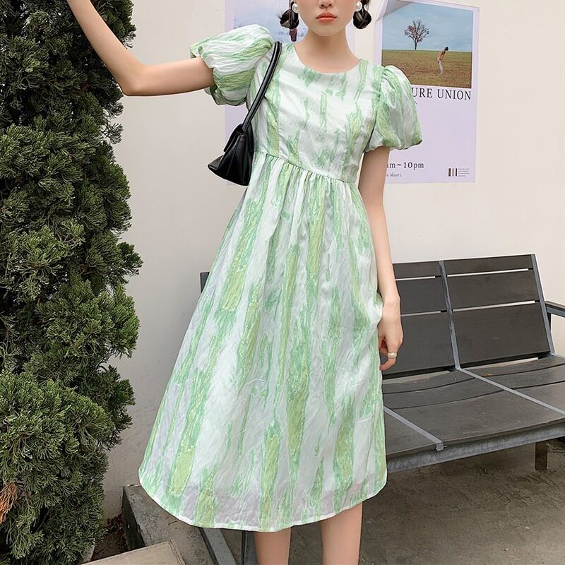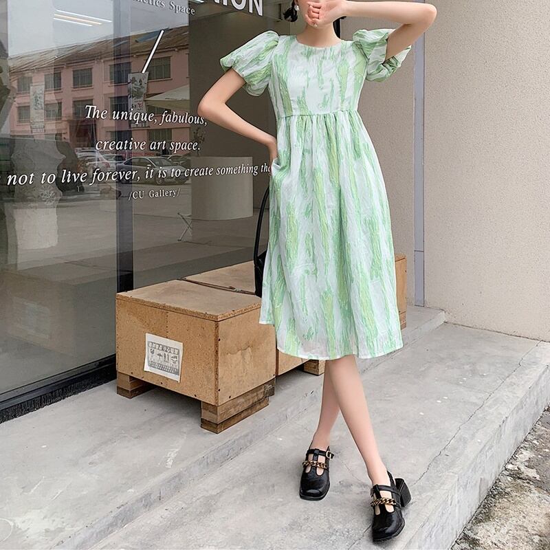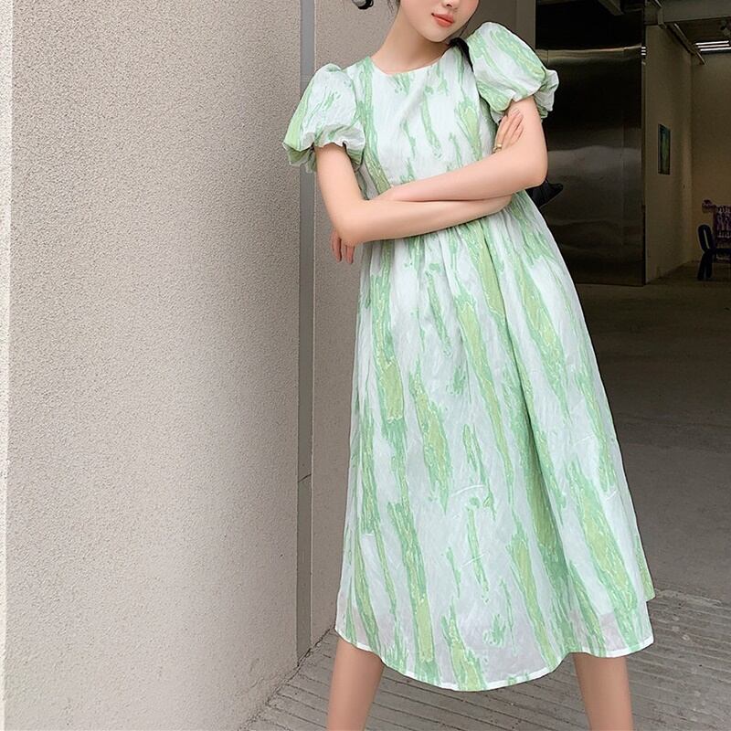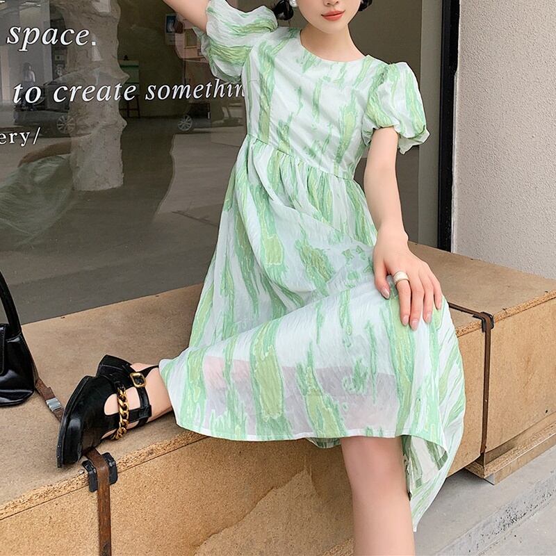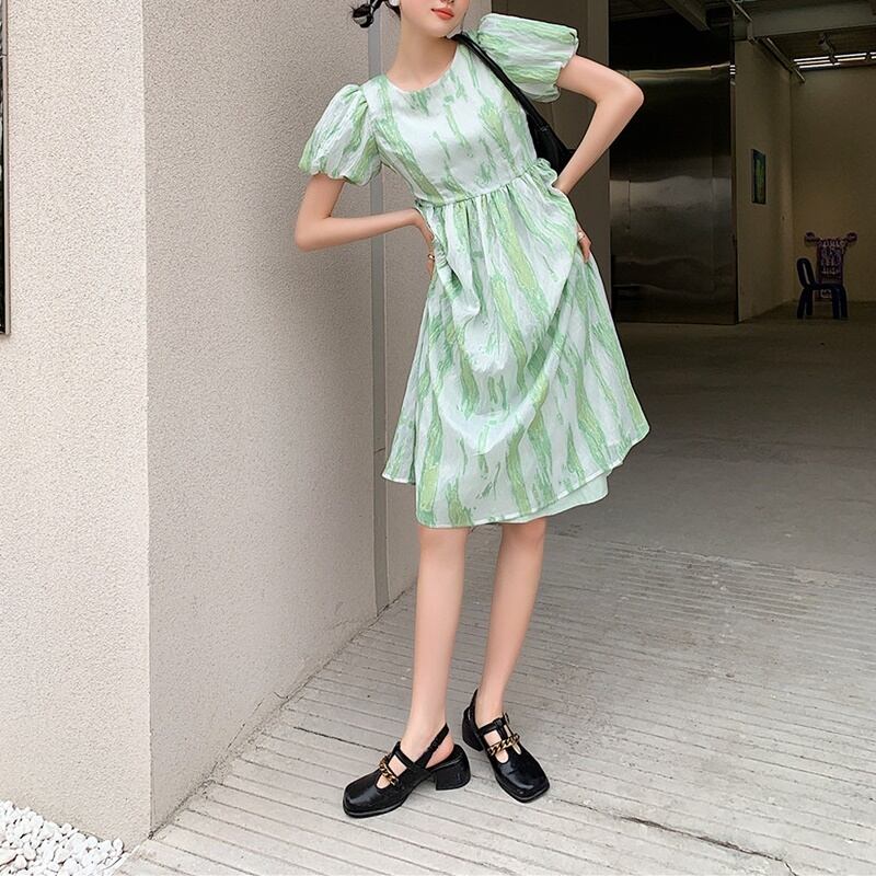 シフォン シアー ラウンドネック 半袖 ワンピース *on505