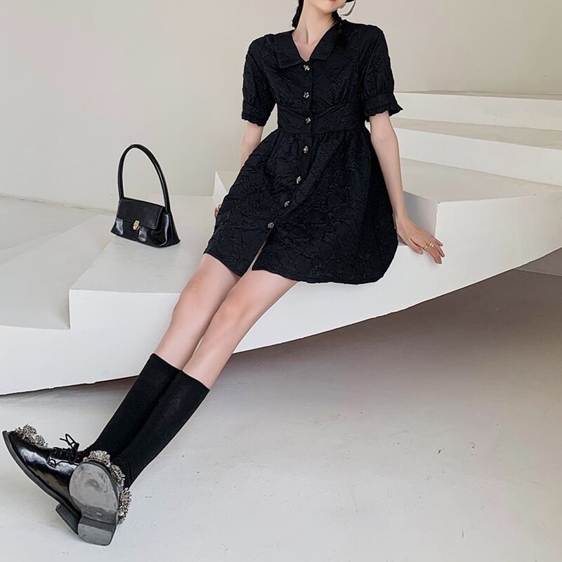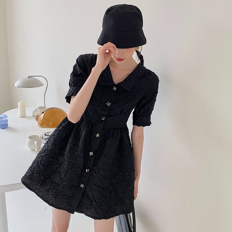 エンボス ボタン Vネック 半袖 ワンピース *on507