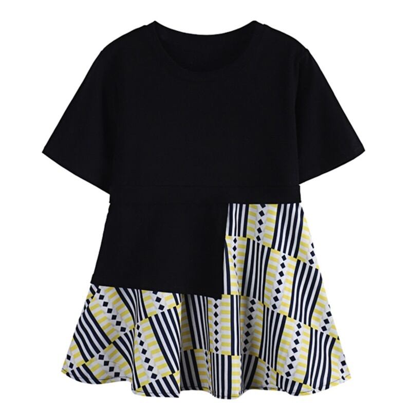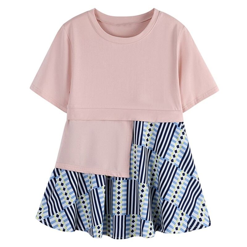 2カラー パッチワーク アシンメトリー 半袖 シャツ *bl267