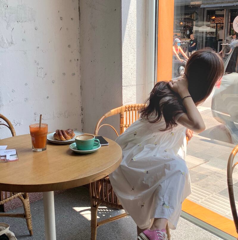 花柄 刺繍 ラウンドネック 半袖 ワンピース *on508
