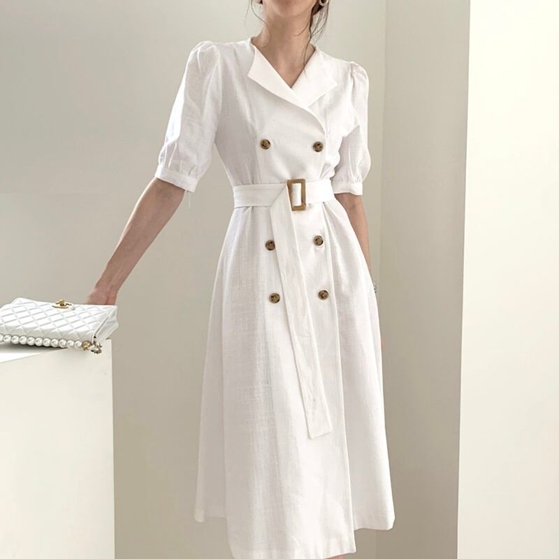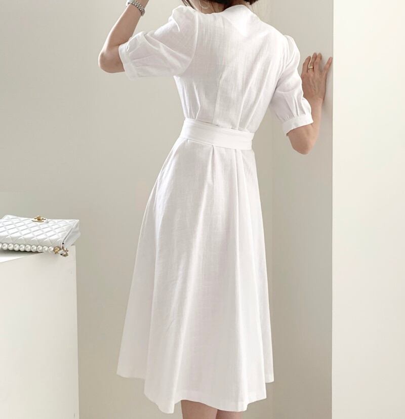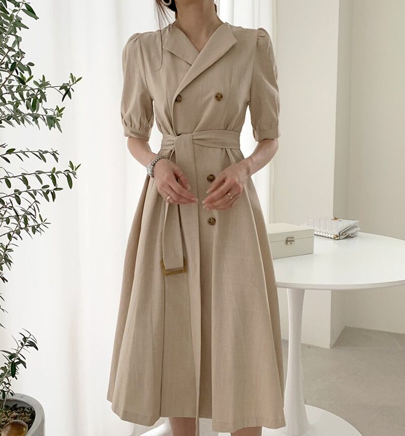 3カラー ベルト 半袖 シャツワンピース *on513